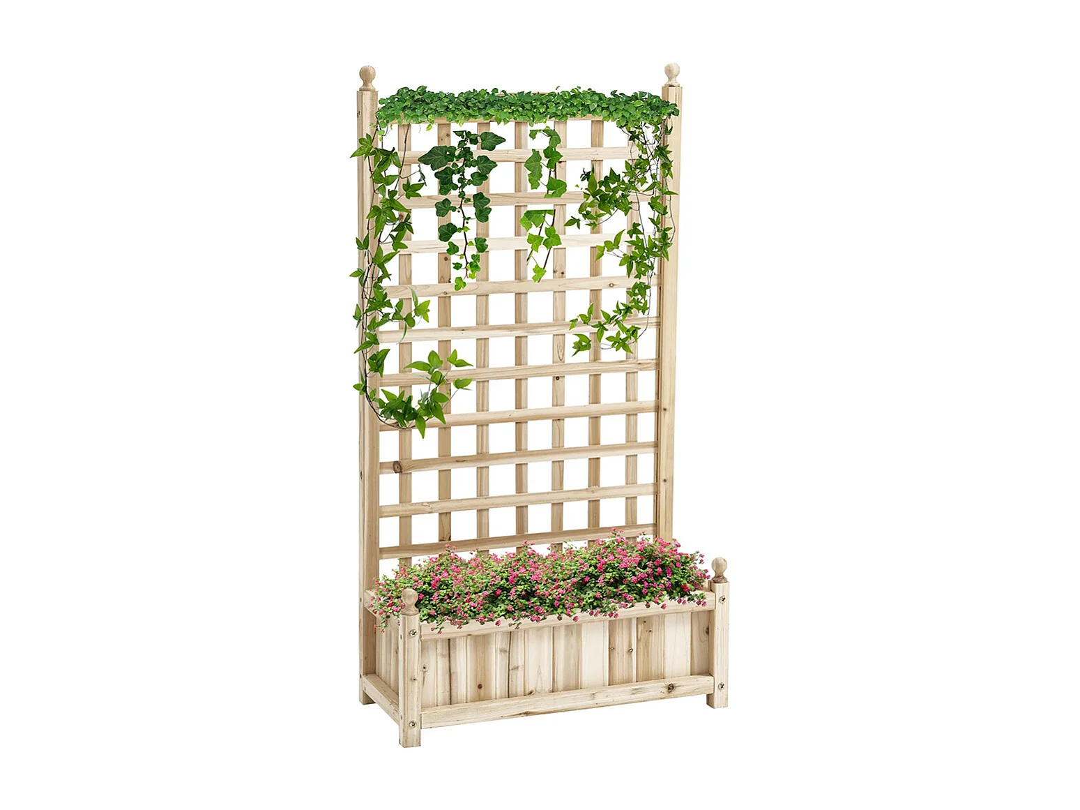Plantenbak met latwerk,Klimplant,Hout,Natuurlijk,64 x 28 x 120 cm