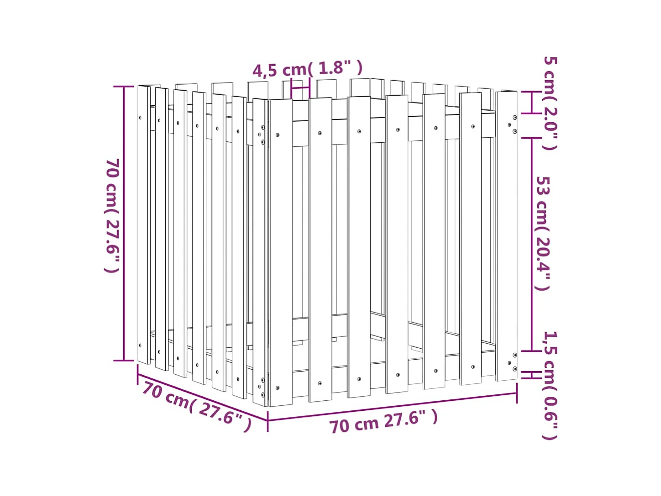 Plantenbak met schuttingmotief 70x70x70 cm geïmpregneerd grenen