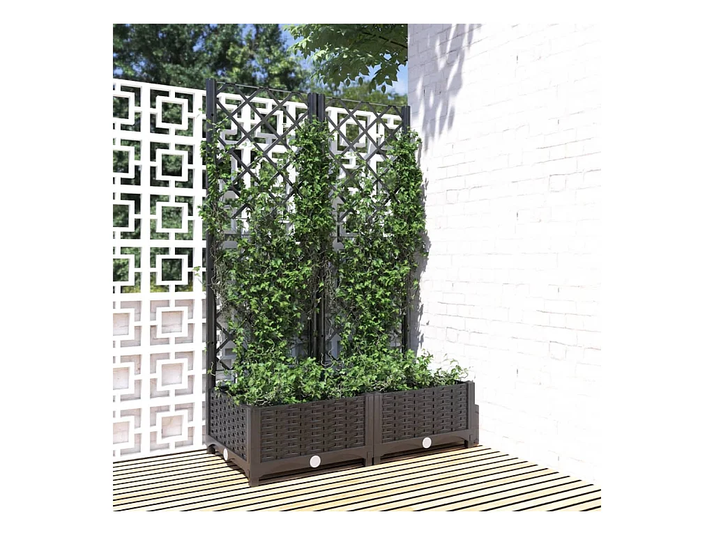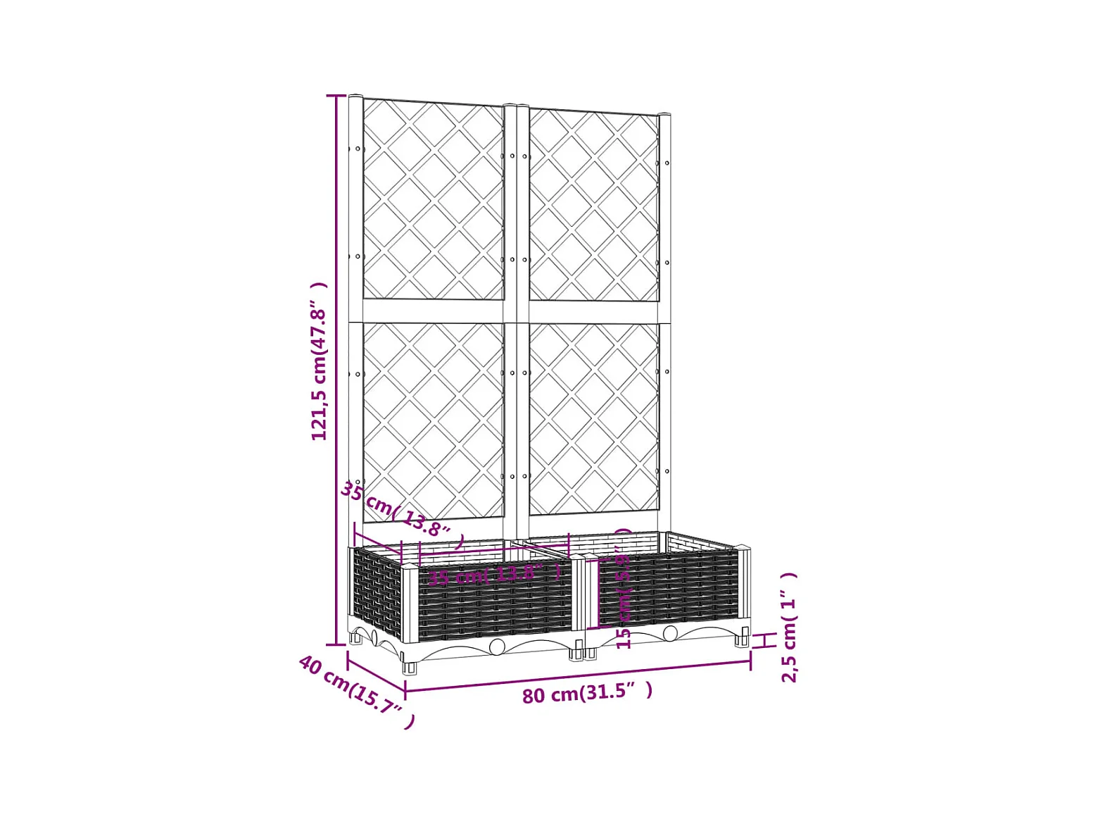Plantenbak met zwart trellis 80x40x142,5 cm PP