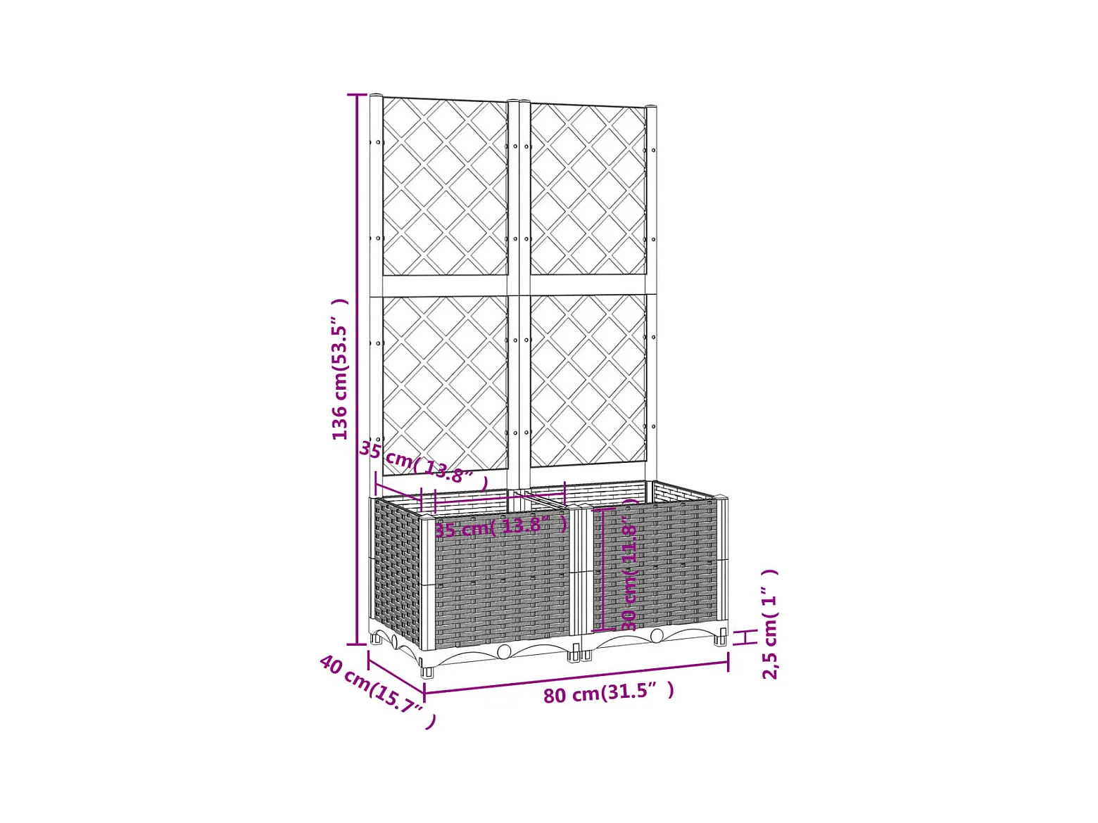 Plantenbak met zwart trellis 80x40x142,5 cm PP