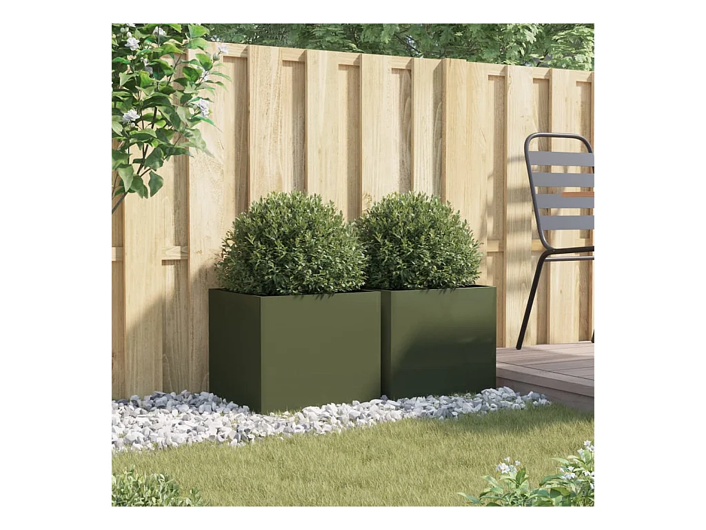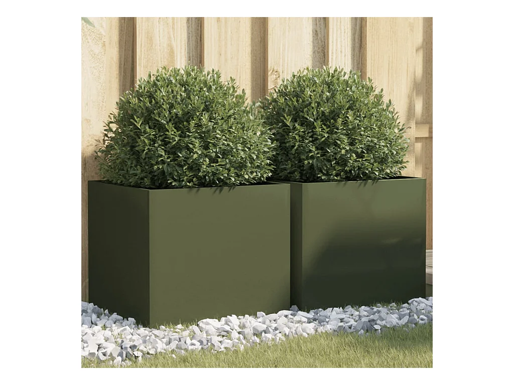 Plantenbakken 2 stuks olijfgroen 40x40x40 cm staal