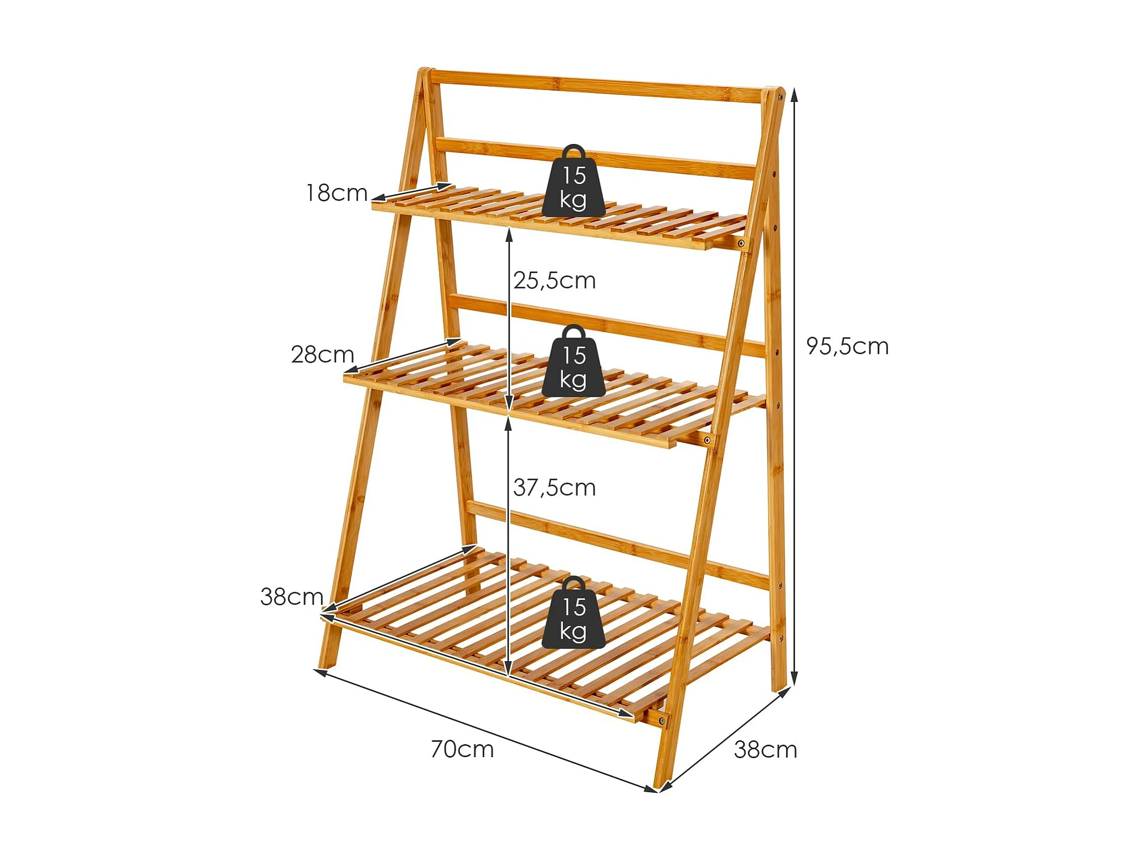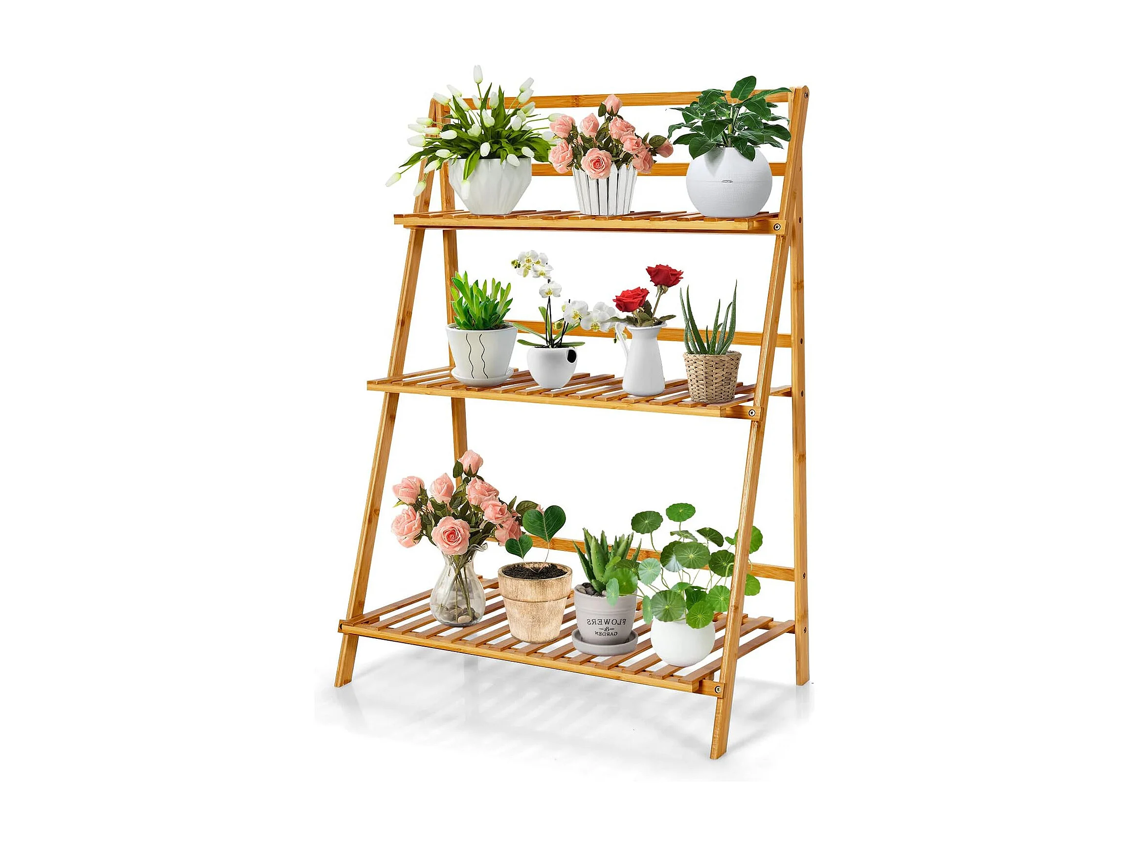 Plantenladder met 3 niveaus, inklapbaar, bamboe, bloemenrek, vrijstaand, bloemenstandaard voor binnen en buiten, bloementrap, plantentrap, ladderrek, natuurTL32259