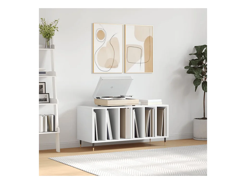 Platenkast 100x38x48 cm bewerkt hout hoogglans wit