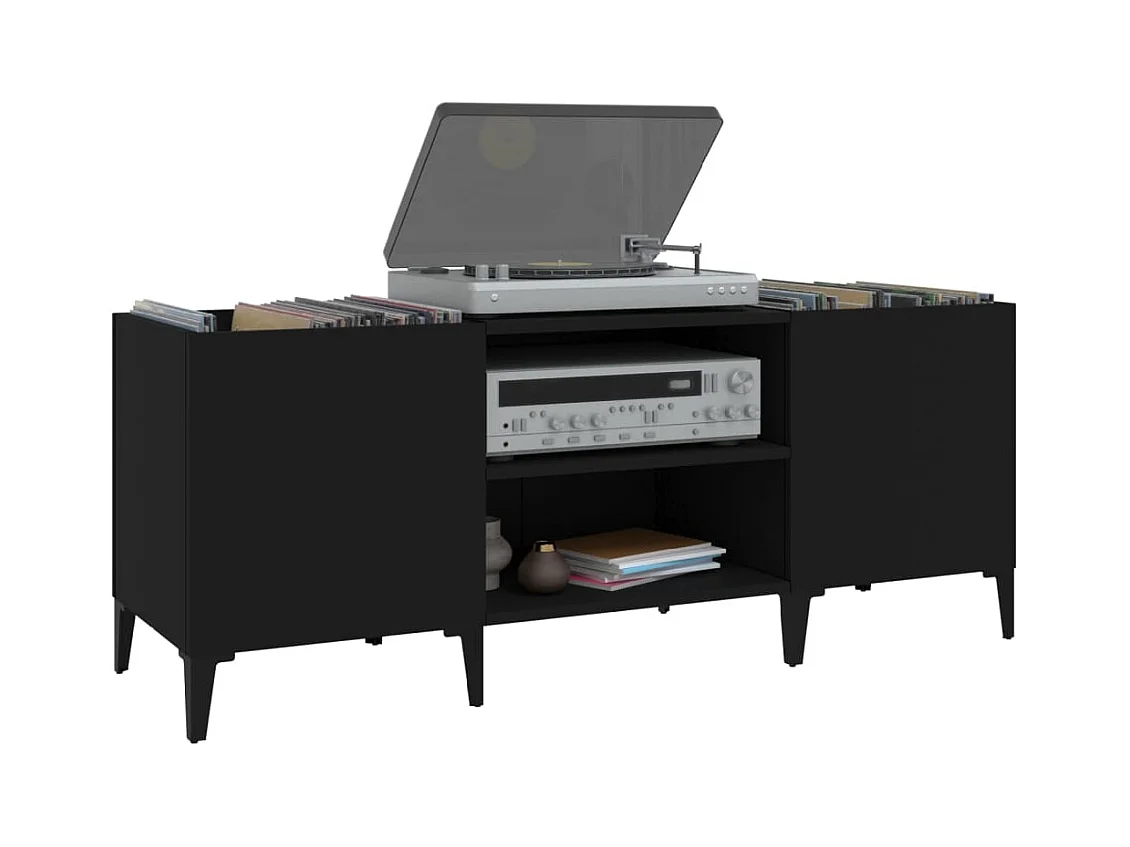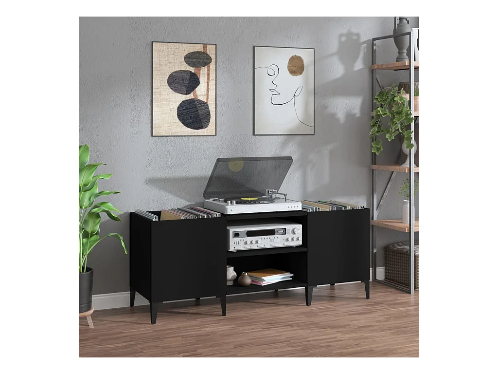 Platenkast 121x38x48 cm bewerkt hout zwart