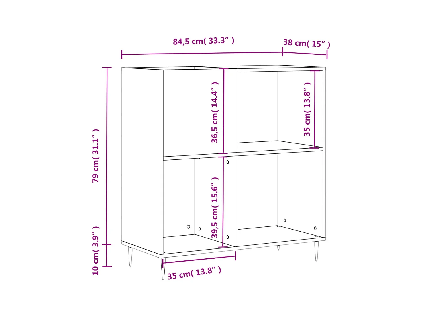 Platenkast 84,5x38x89 cm bewerkt hout gerookt eikenkleurig