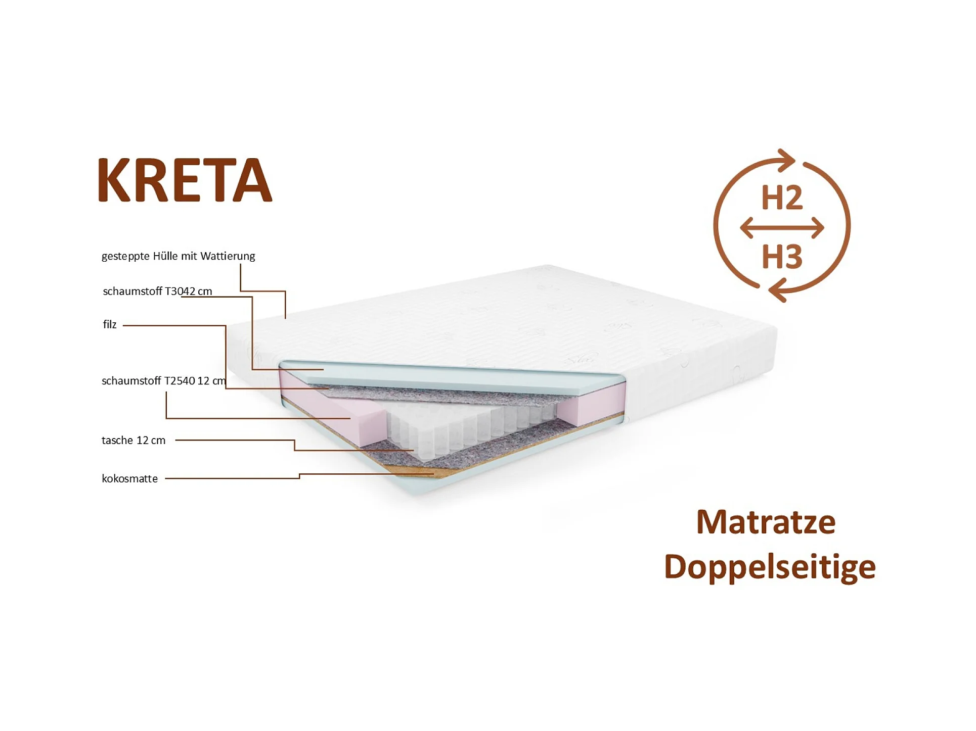Pocketmatras KRETA, 160x200 cm, H2/H3