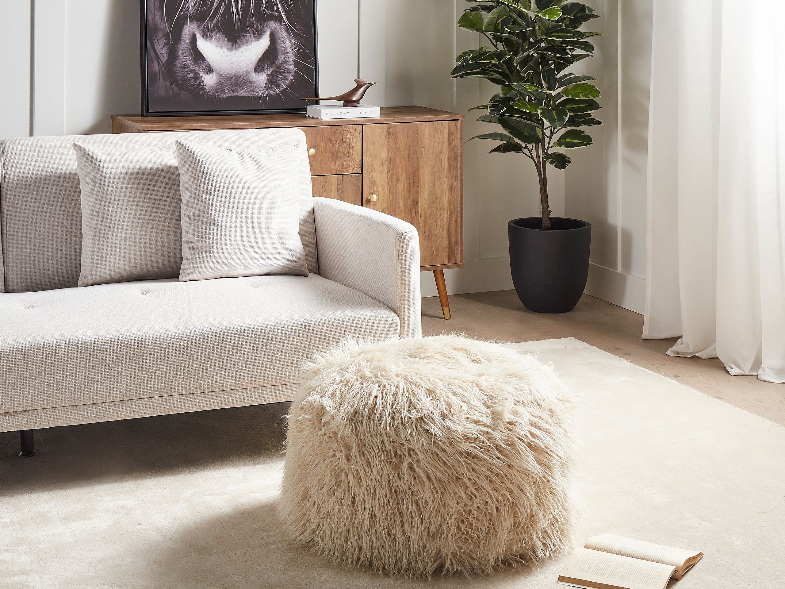 Poef TUKKI Nepbont Lichtbeige 50 cm 50 cm 30 cm