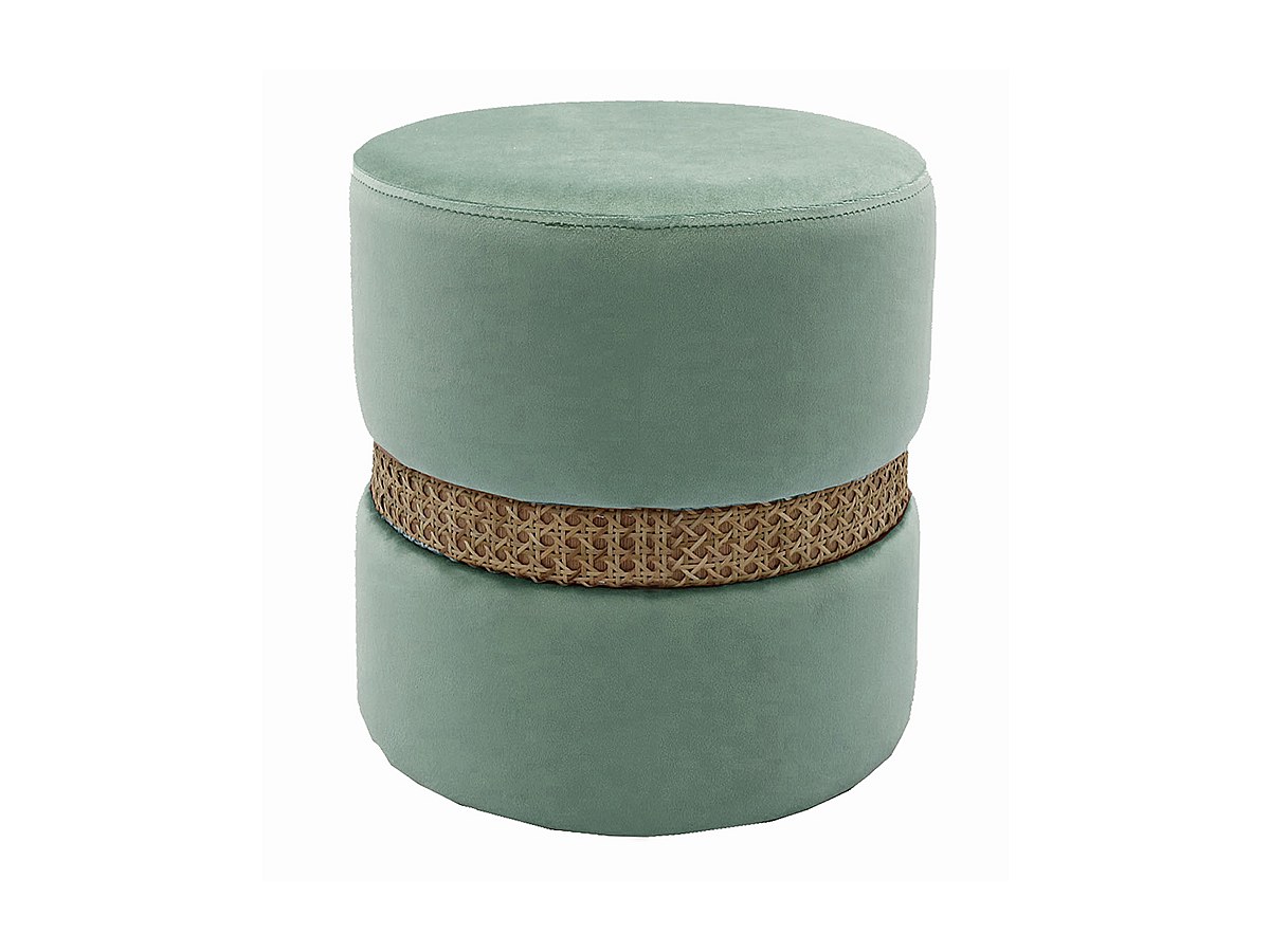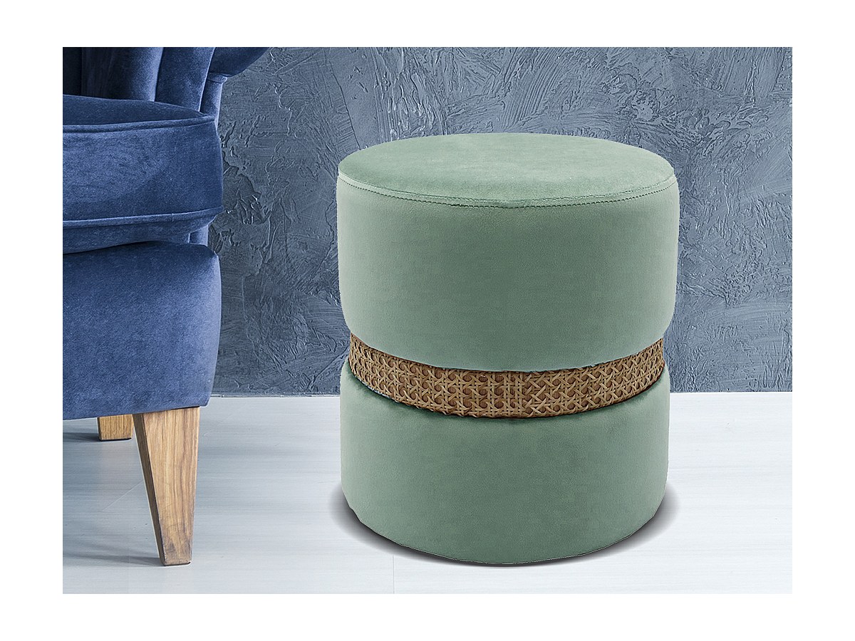 Val voor de poef van fluweel met zijn rieten details LEVI. Hij brengt meteen een zachte sfeer in uw ruimte!