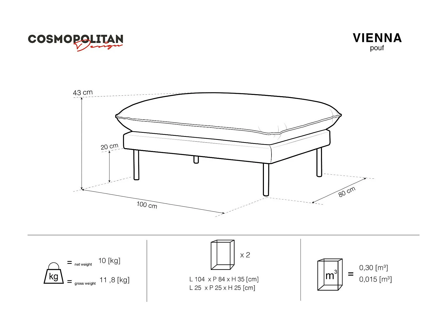 Cosmopolitan Design - Poef "Vienna" Flueel, Lichtgrijs - 100x80x43cm