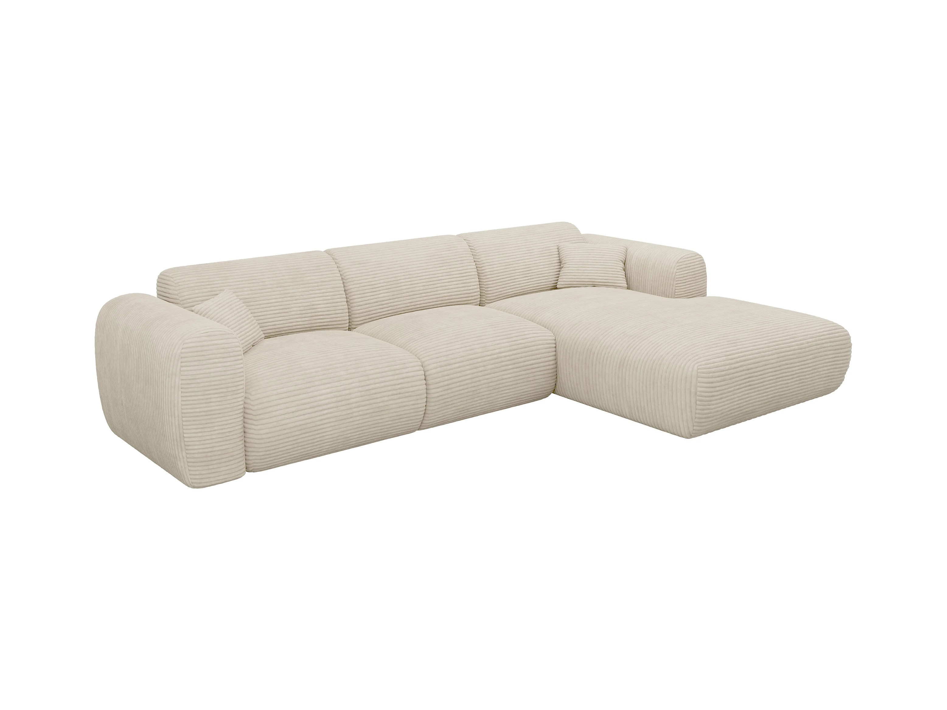 Grote hoekbank met hoek rechts van beige ribfluweel POGNI van Maison Céphy