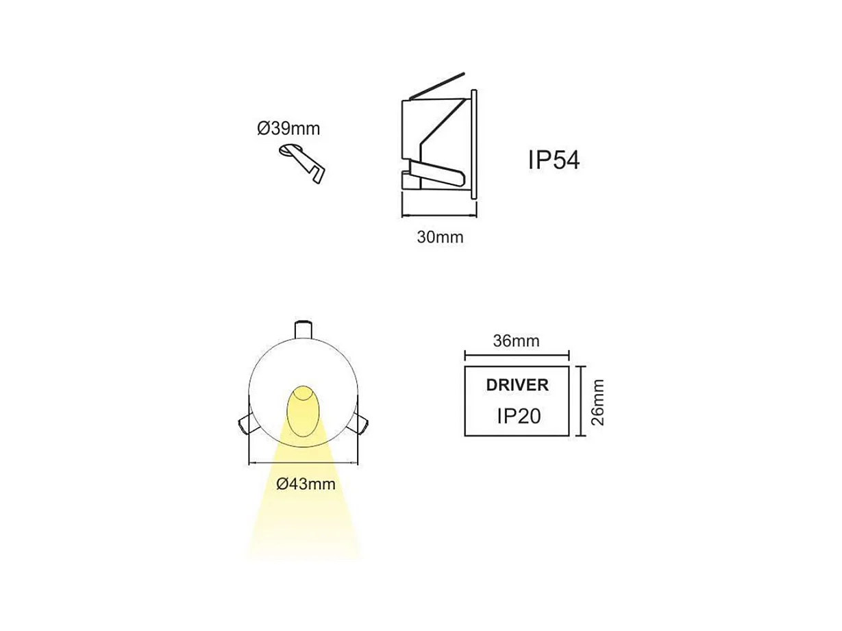 Grow - Beneito & Faure LED inbouw wandlamp - 4W, 3000K warm licht, 120° - Ronde witte inbouw wandlamp