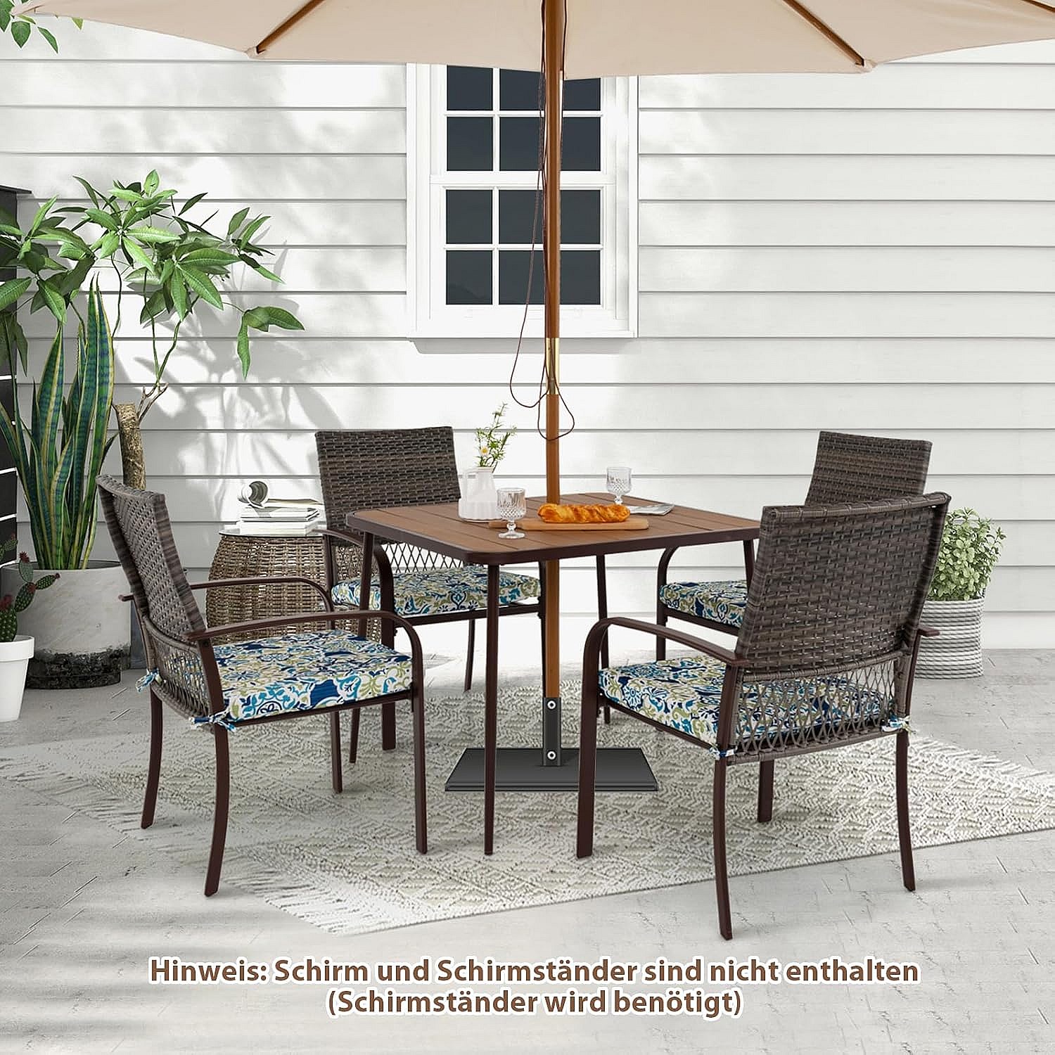Polyrotan tuinmeubelset voor 4 personen, tafel, 4 rotanstoelen en kussens, tafelblad, terrasmeubelset, tuingarnituur, zitgroep, zitmeubel, eetgroep