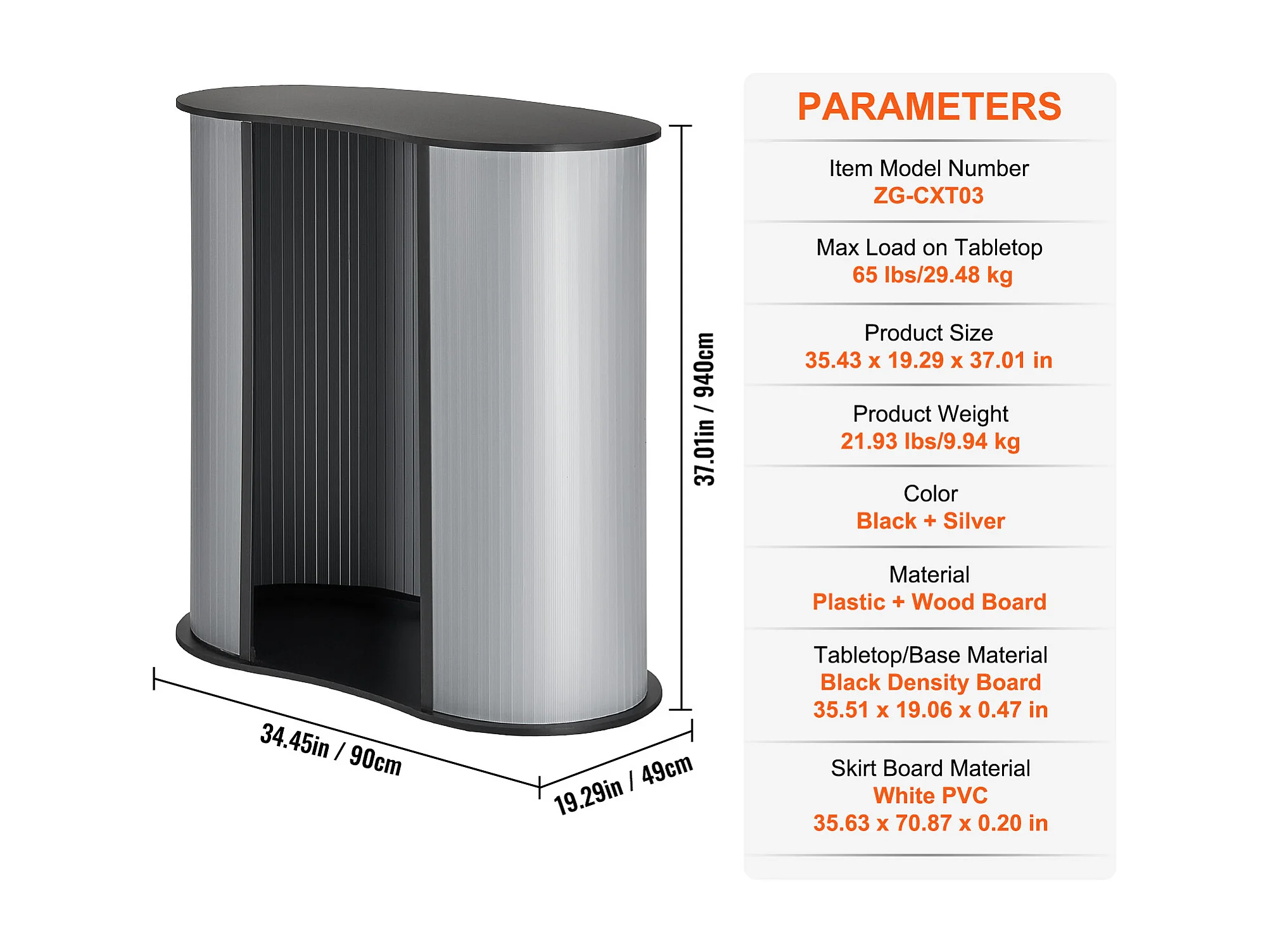 Presentatietafel SucceBuy voor Professionele Beurs, Opvouwbare Balieondersteuning 90CM x 49CM x 94CM