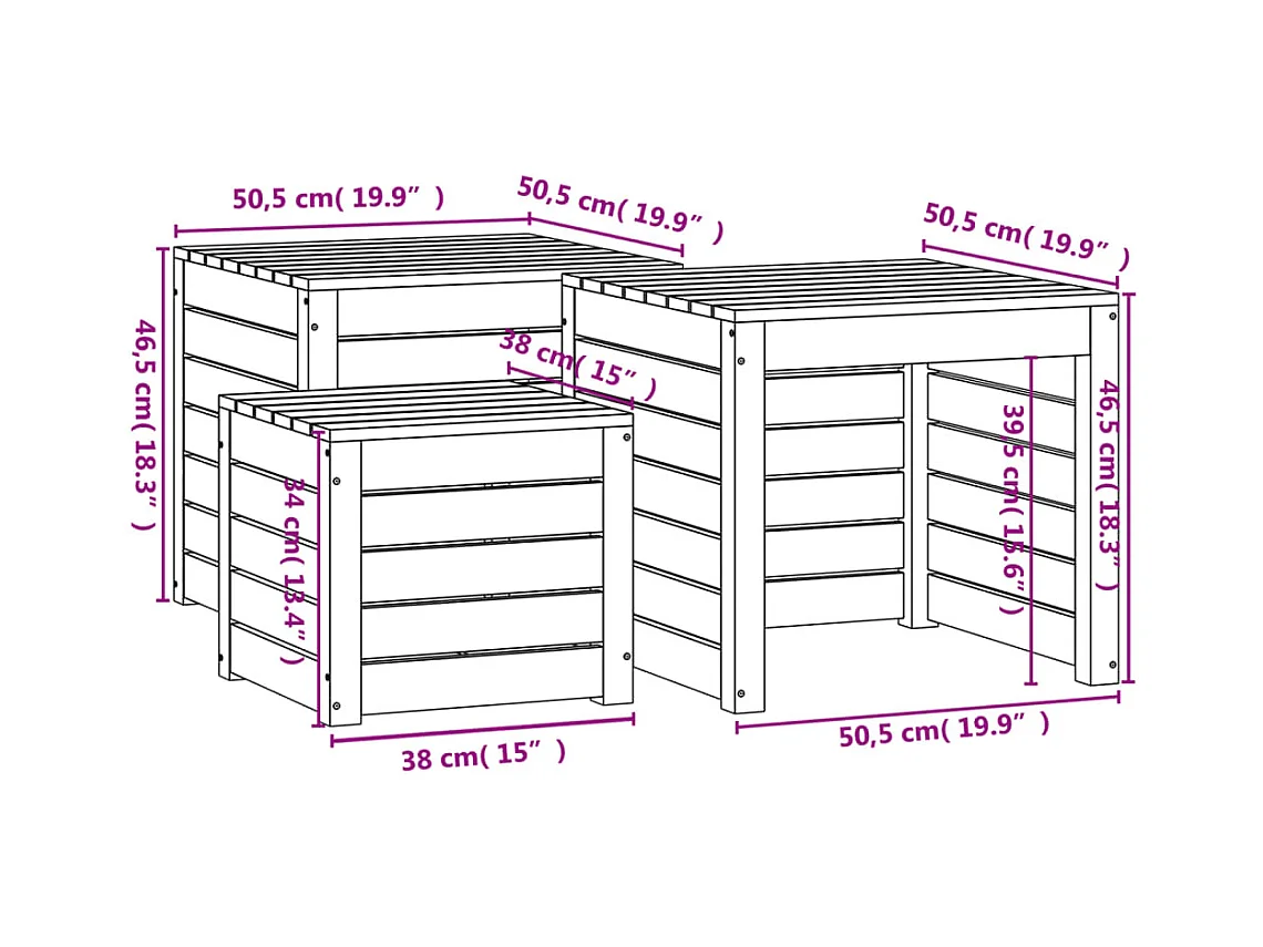 Violeta 3-delige Tuinboxset massief grenenhout wit