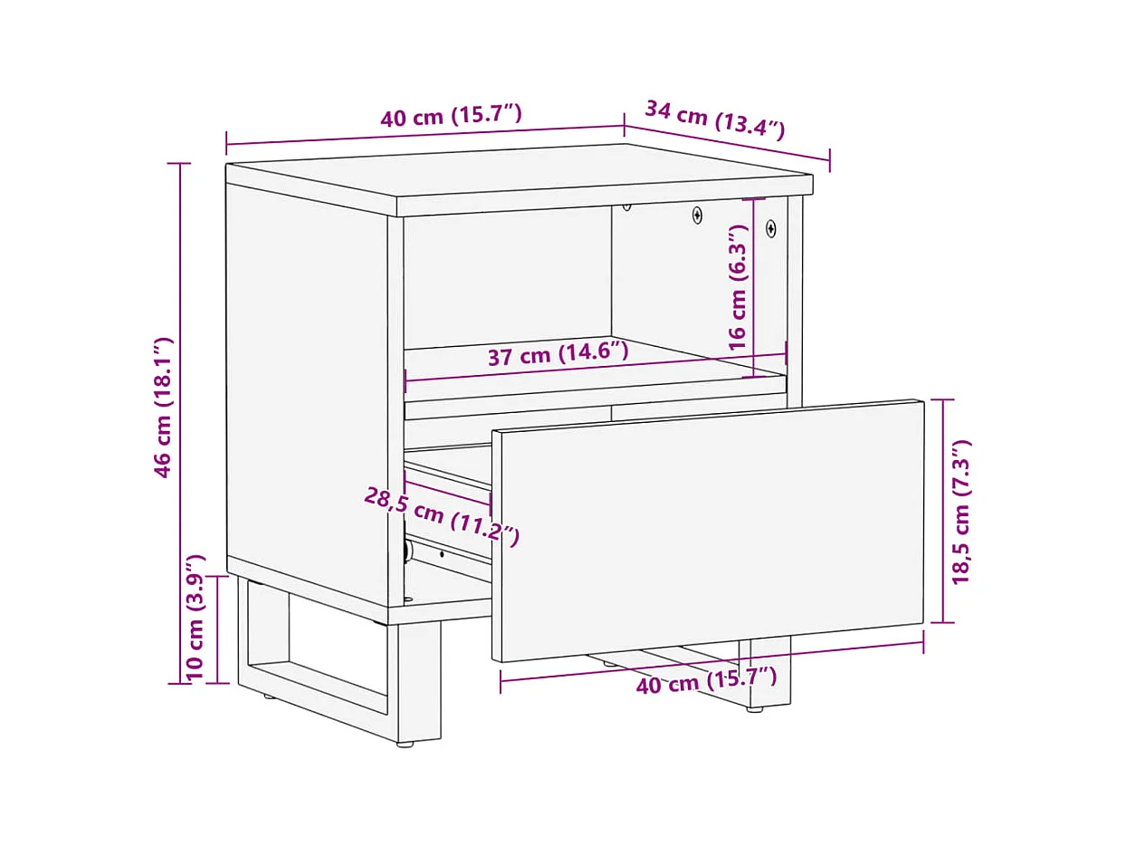 Janoah Nachtkastje 40x34x46 cm massief ruw mangohout
