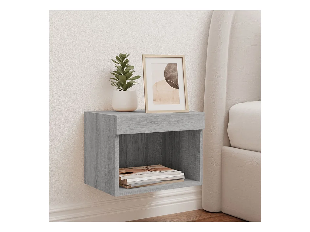 Prolenta Premium - Nachtkastje met LED's wandgemonteerd grijs sonoma eikenkleurig