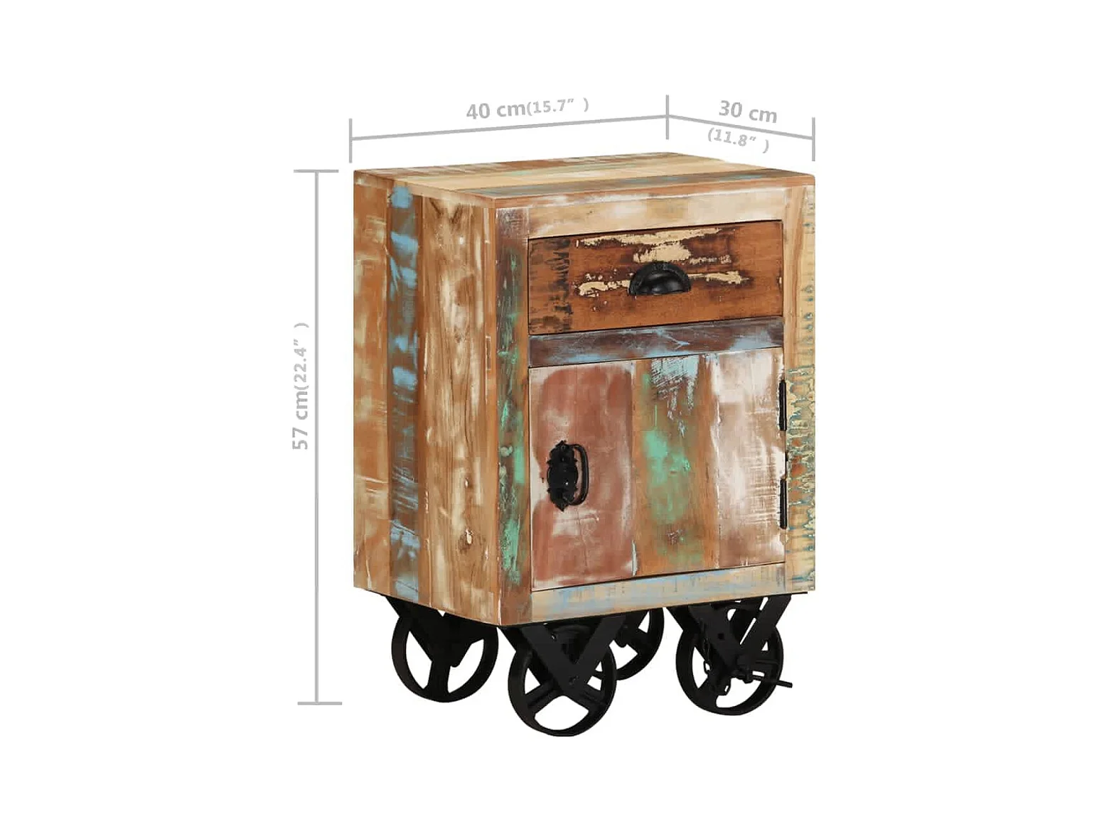Garden Furniture - Nachtkastje met wieltjes 40x30x57 cm massief gerecycled hout