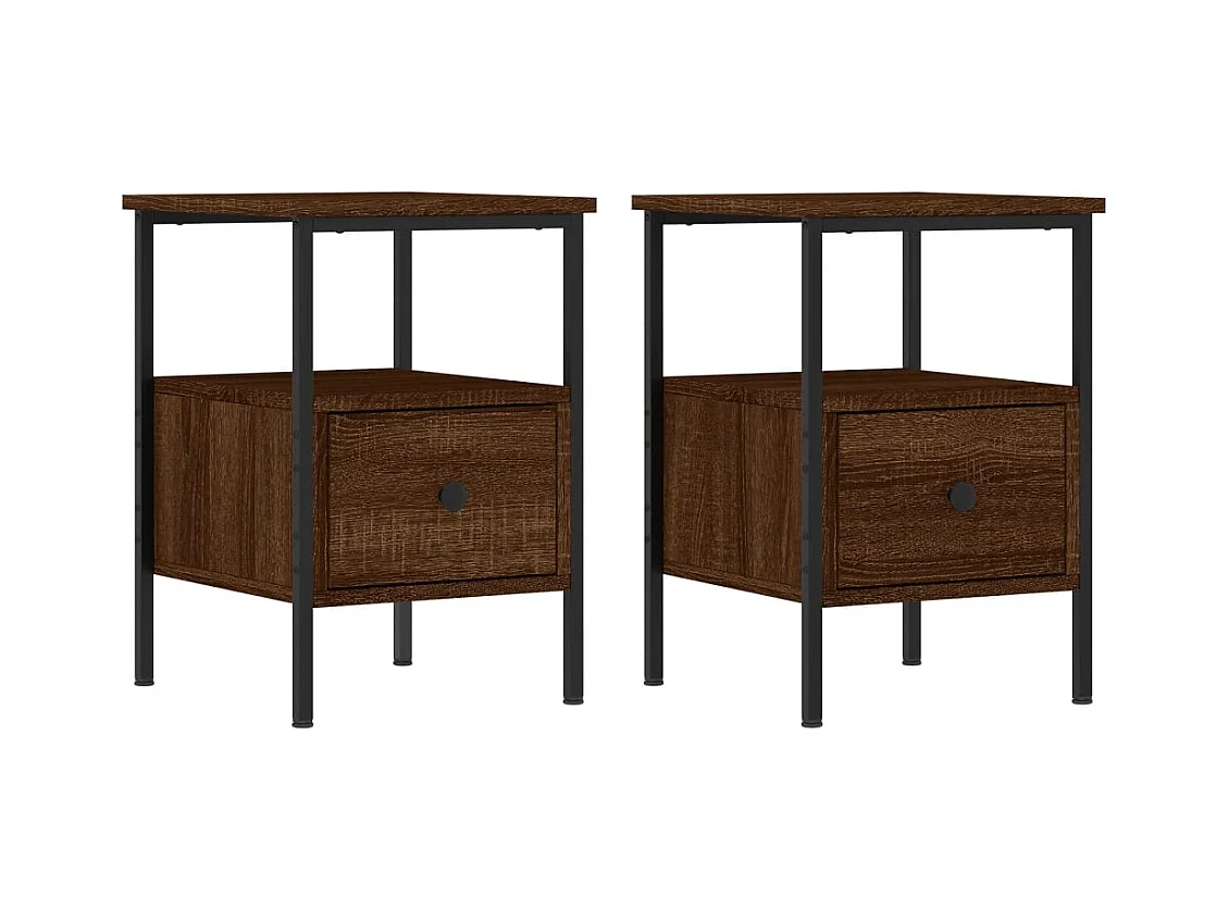 Buffalo Nachtkastjes 2 st 34x35,5x45 cm bewerkt hout gerookt eikenkleur