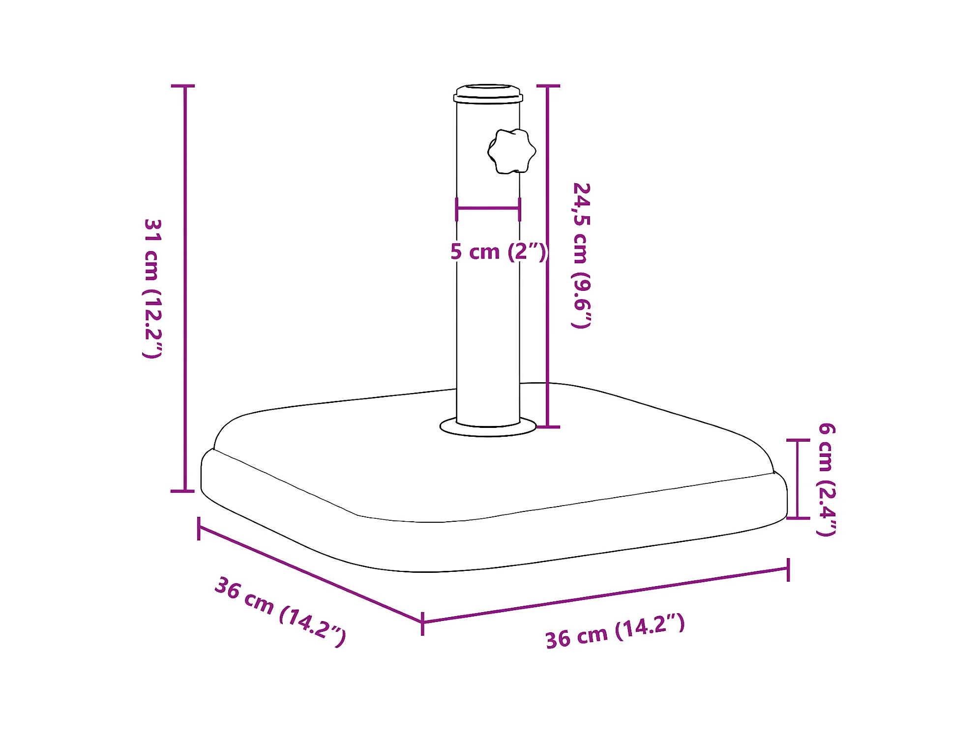 Tjalrin Parasolvoet voor stokken van Ø32/38/48 mm 15 kg rechthoekig