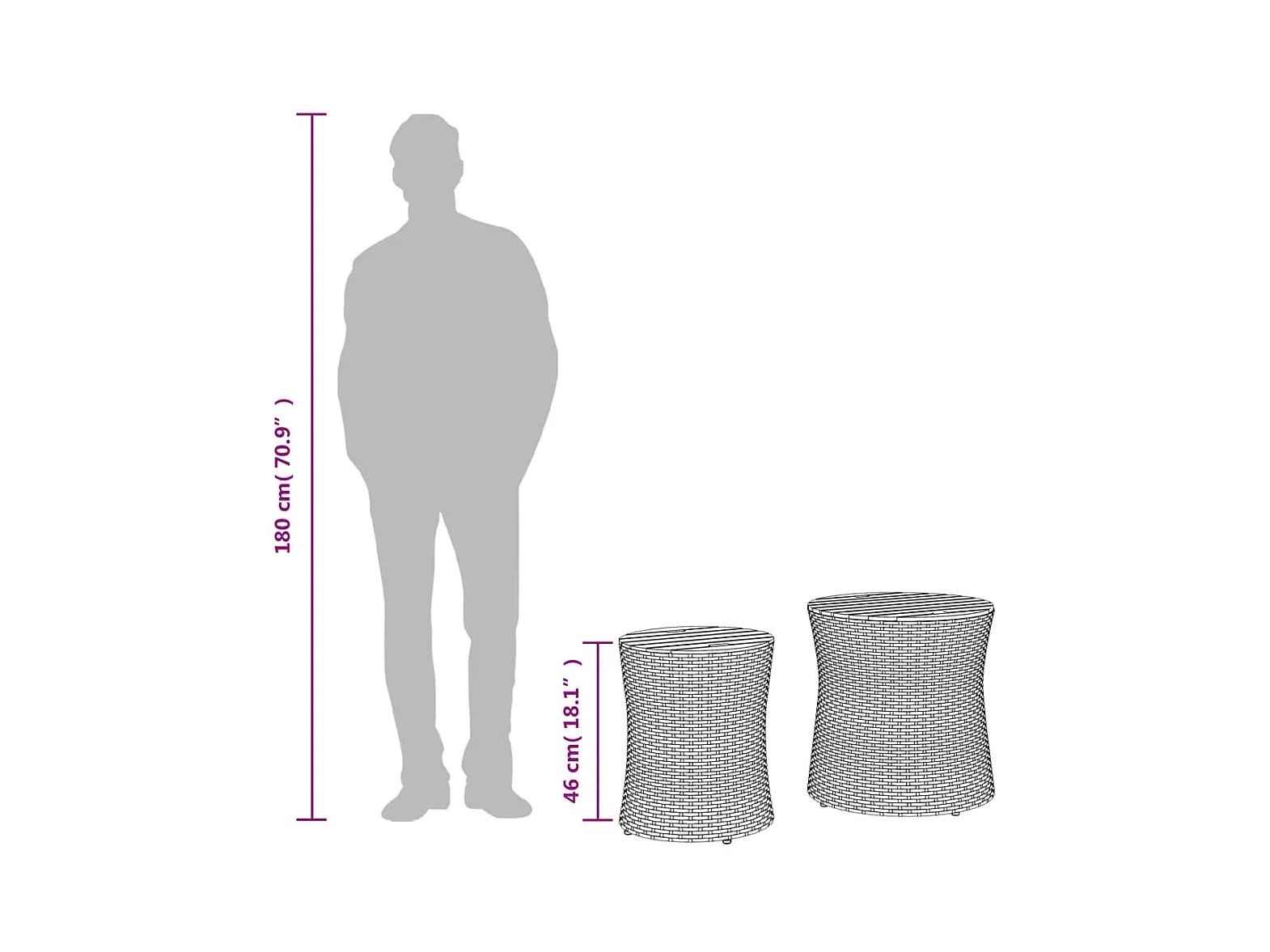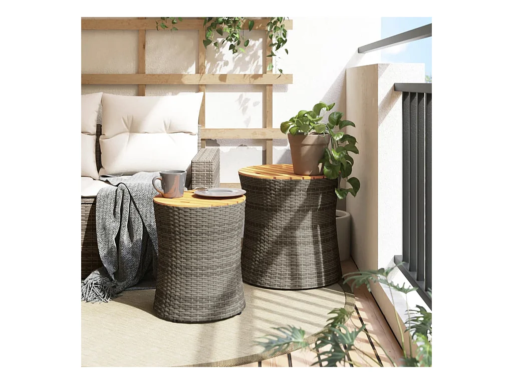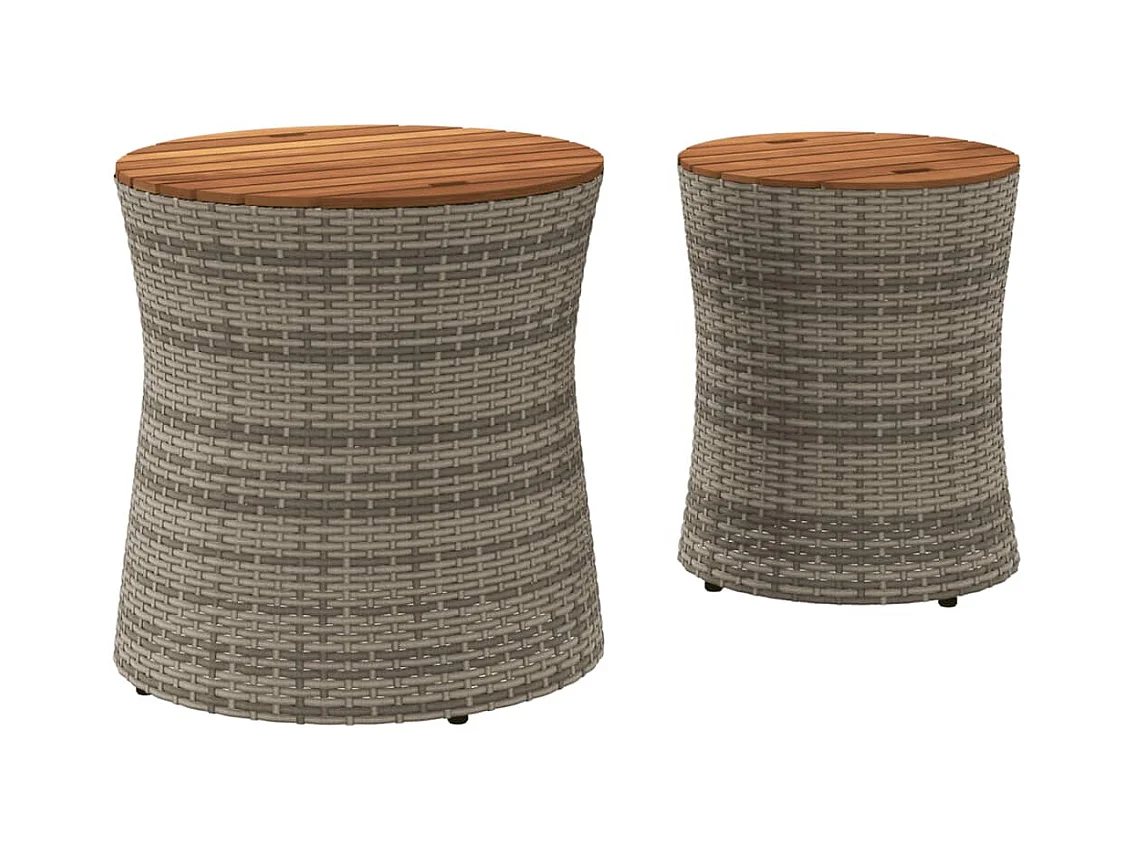 Oeffelt Tuinbijzettafels 2 st met houten blad poly rattan grijs
