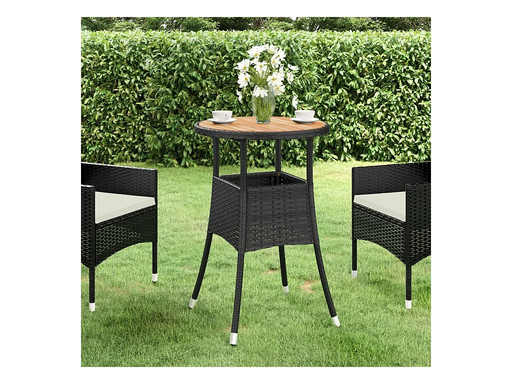 Marie-Elodie Tuintafel Ø60x75 cm acaciahout en poly rattan zwart