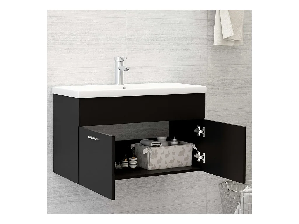 Prolenta Premium - Wastafelkast met ingebouwde wastafel spaanplaat zwart