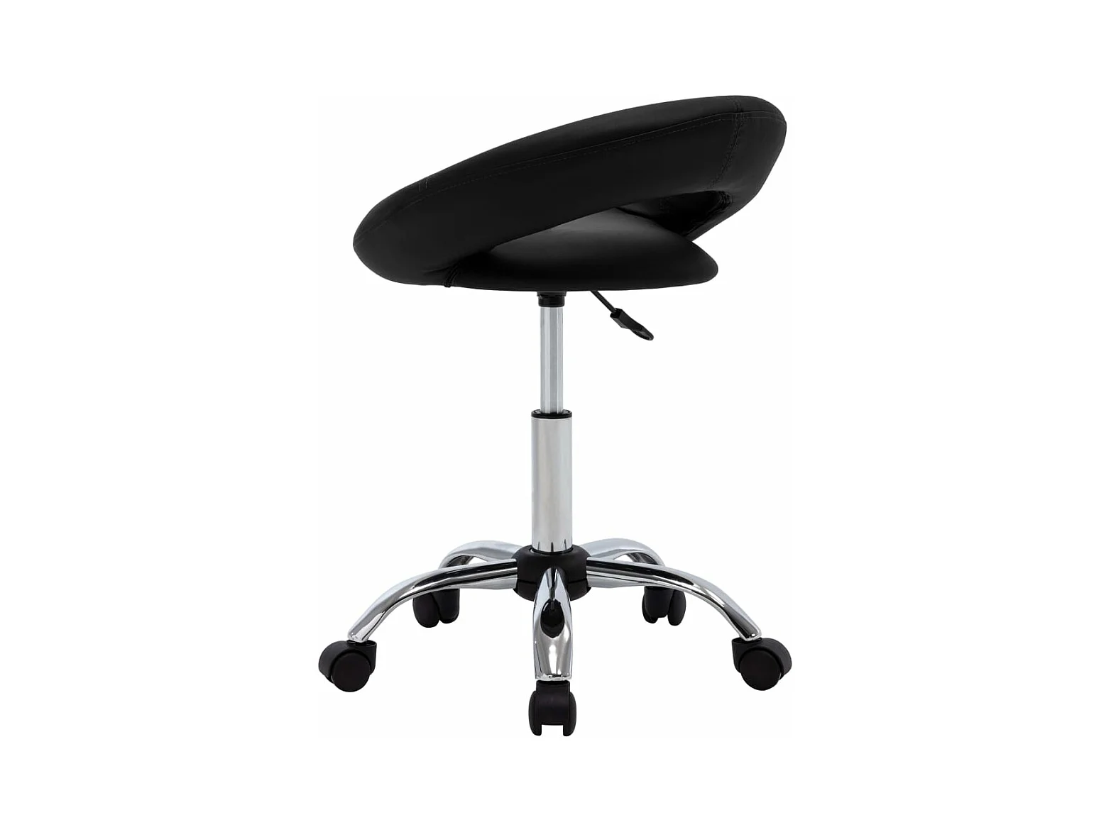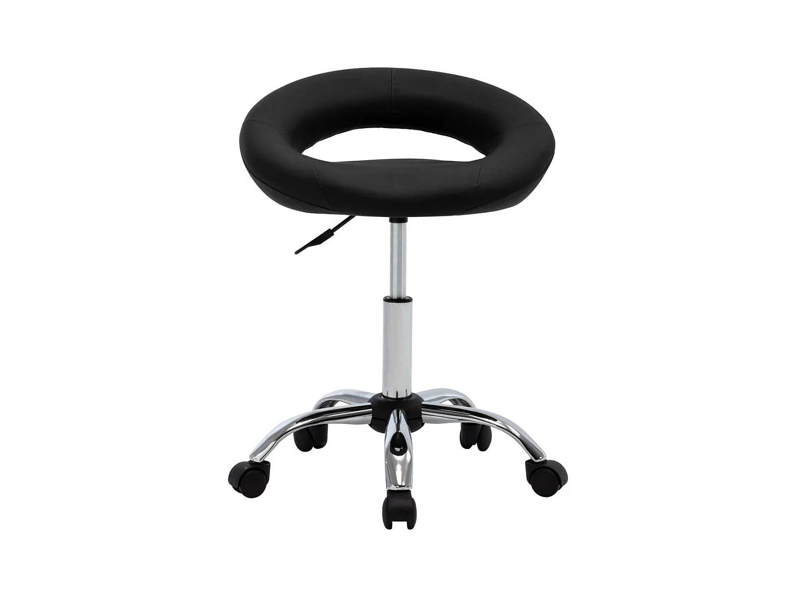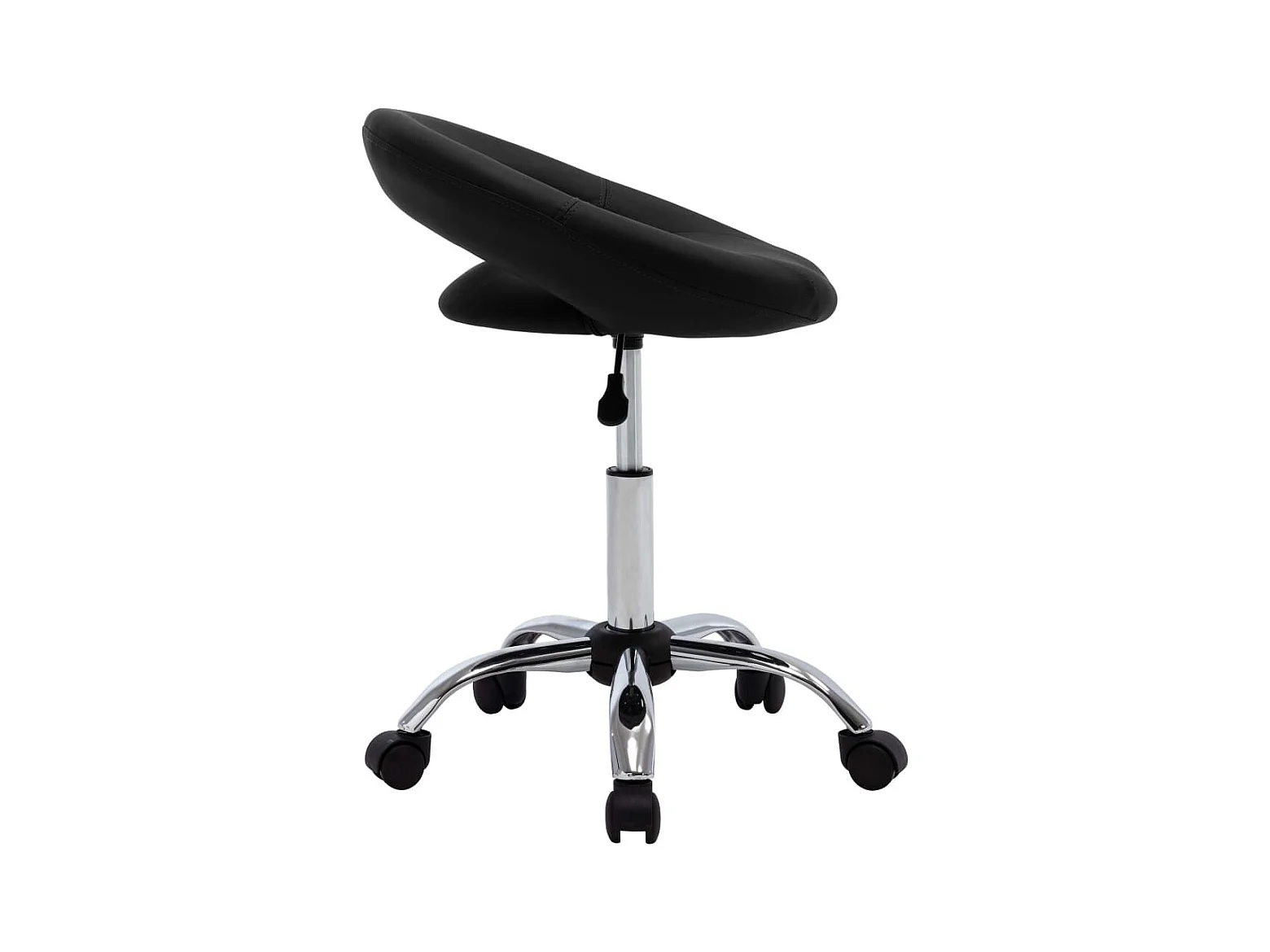 Verstelbare rolkruk, met rugleuning en voetensteun, imitatieleer, zwart (43x43x59-75 cm)