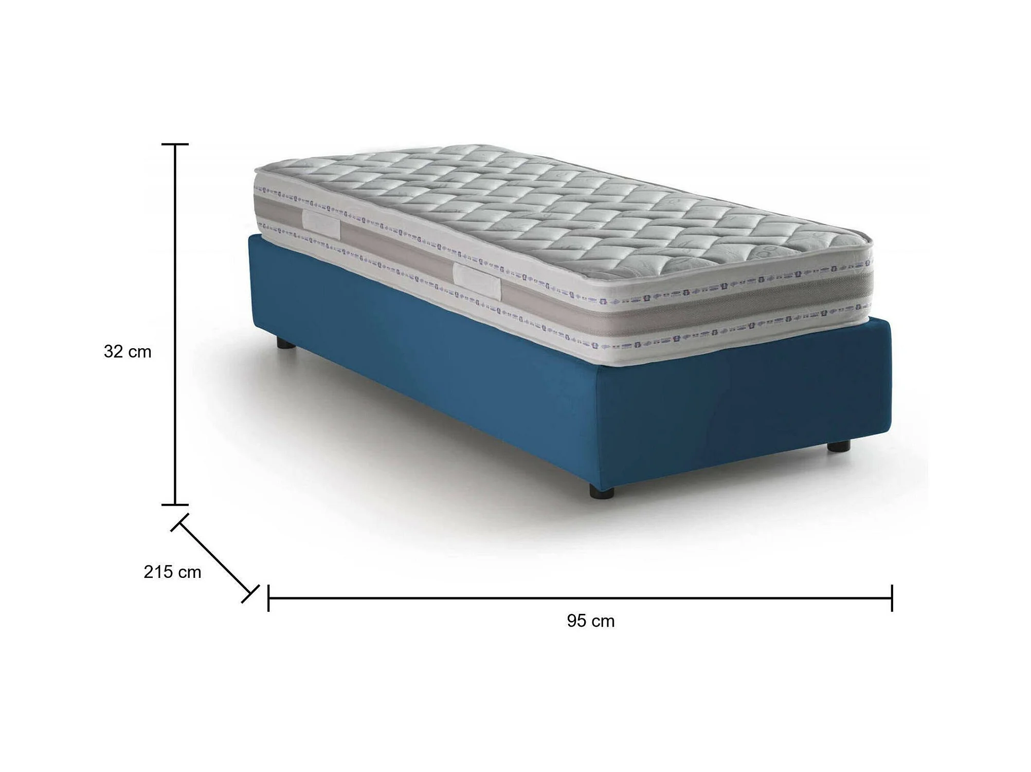 Dbach eenpersoonsbed, Opbergbed met stoffen bekleding, 100% Made in Italy, Opening aan de voorkant, inclusief matras van 80x200 cm, Blauw