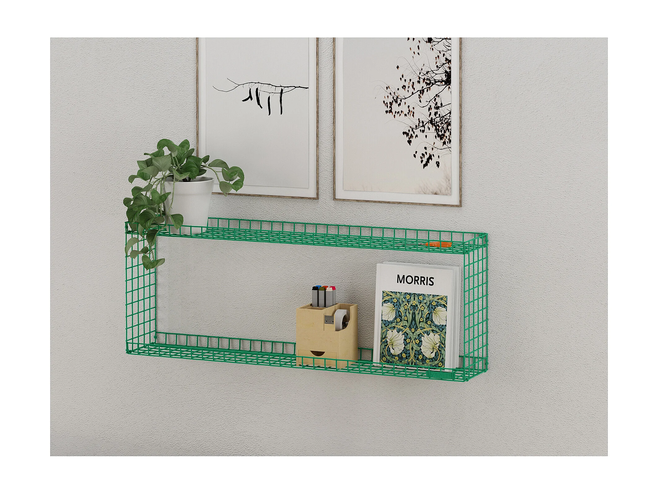 RACK | Wandplank met 2 planken in groen metaal, groot