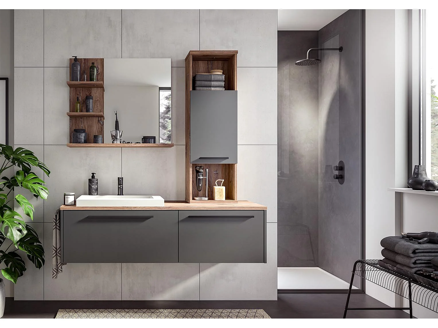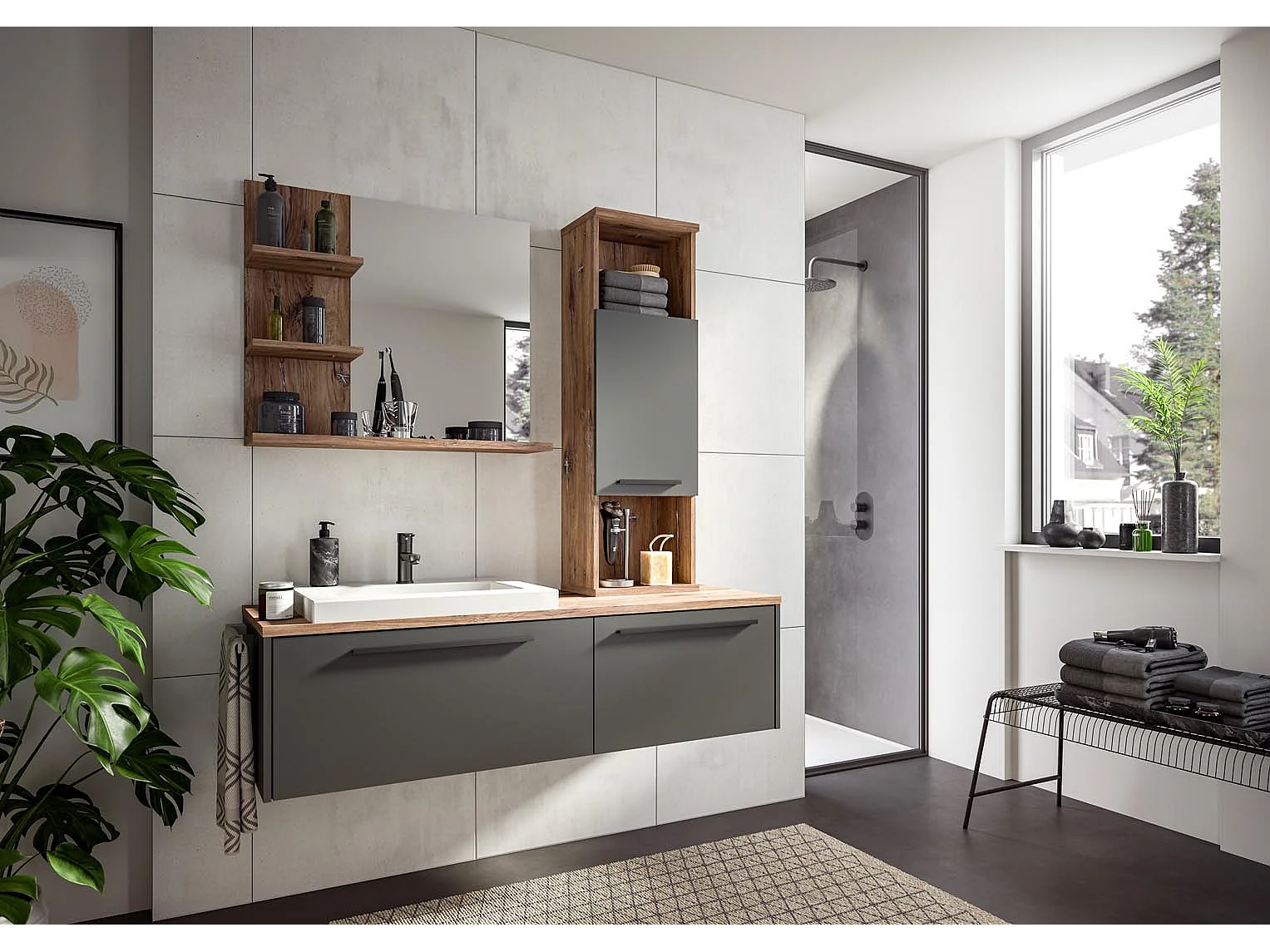 Ramon wastafel 140cm 2 laden grijs,eik decor.