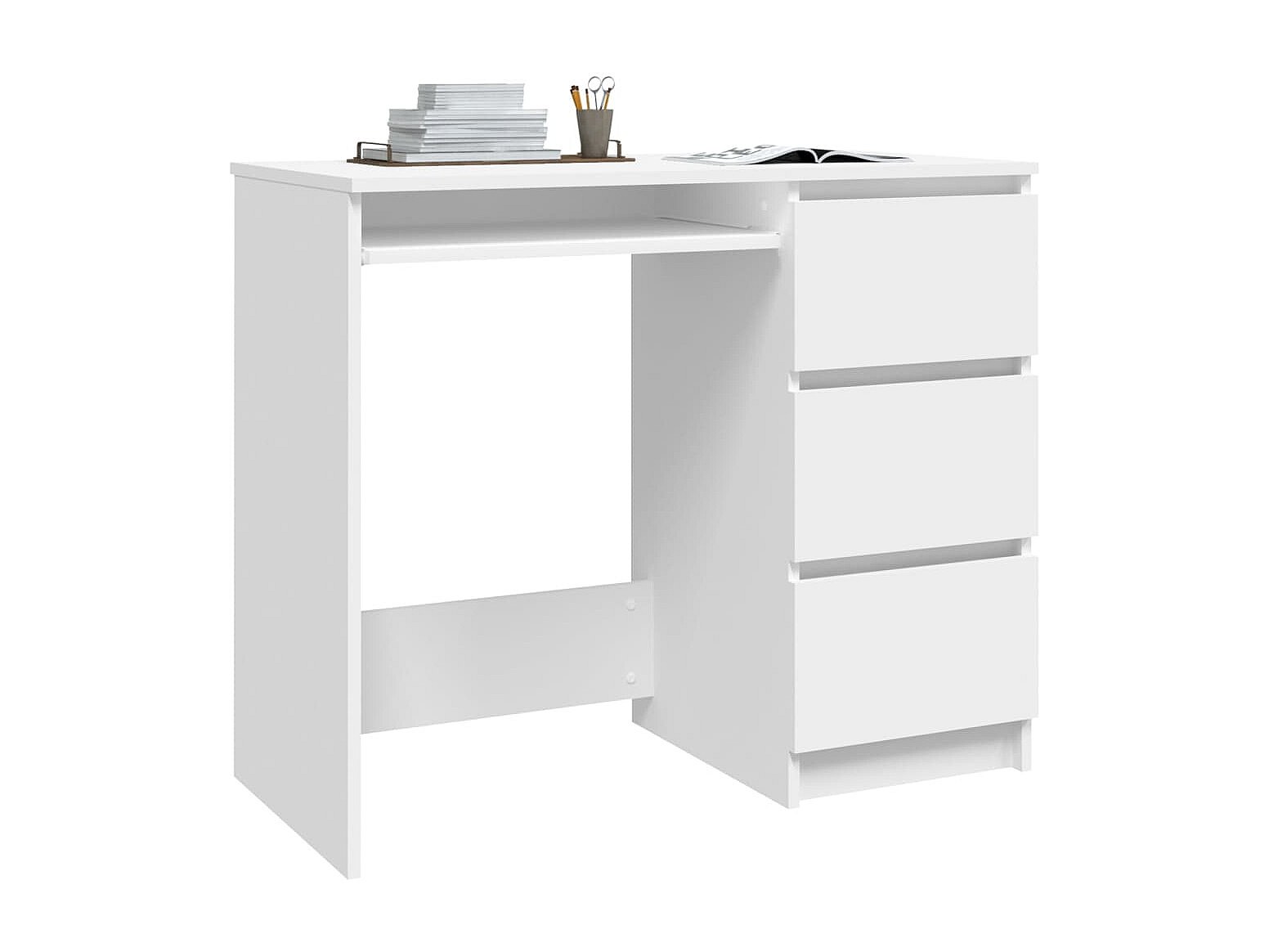 Dit bureau is gemaakt van hoogwaardig bewerkt hout, waardoor het stevig en duurzaam is. Met zijn lengte van 90 cm neemt dit bureau weinig ruimte in beslag, waardoor het geschikt is voor in een kinderkamer of in een hoek geplaatst kan worden. De lade biedt voldoende ruimte voor het opbergen van mappen, boeken en andere spullen. Daarnaast is het kantoormeubel eenvoudig schoon te maken met een vochtige doek.