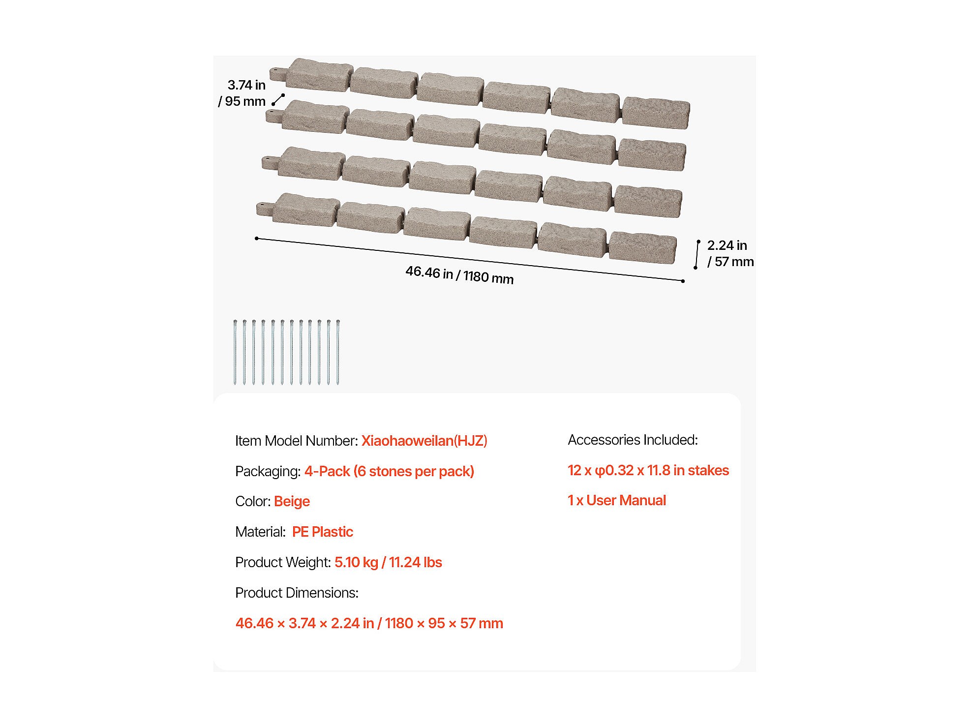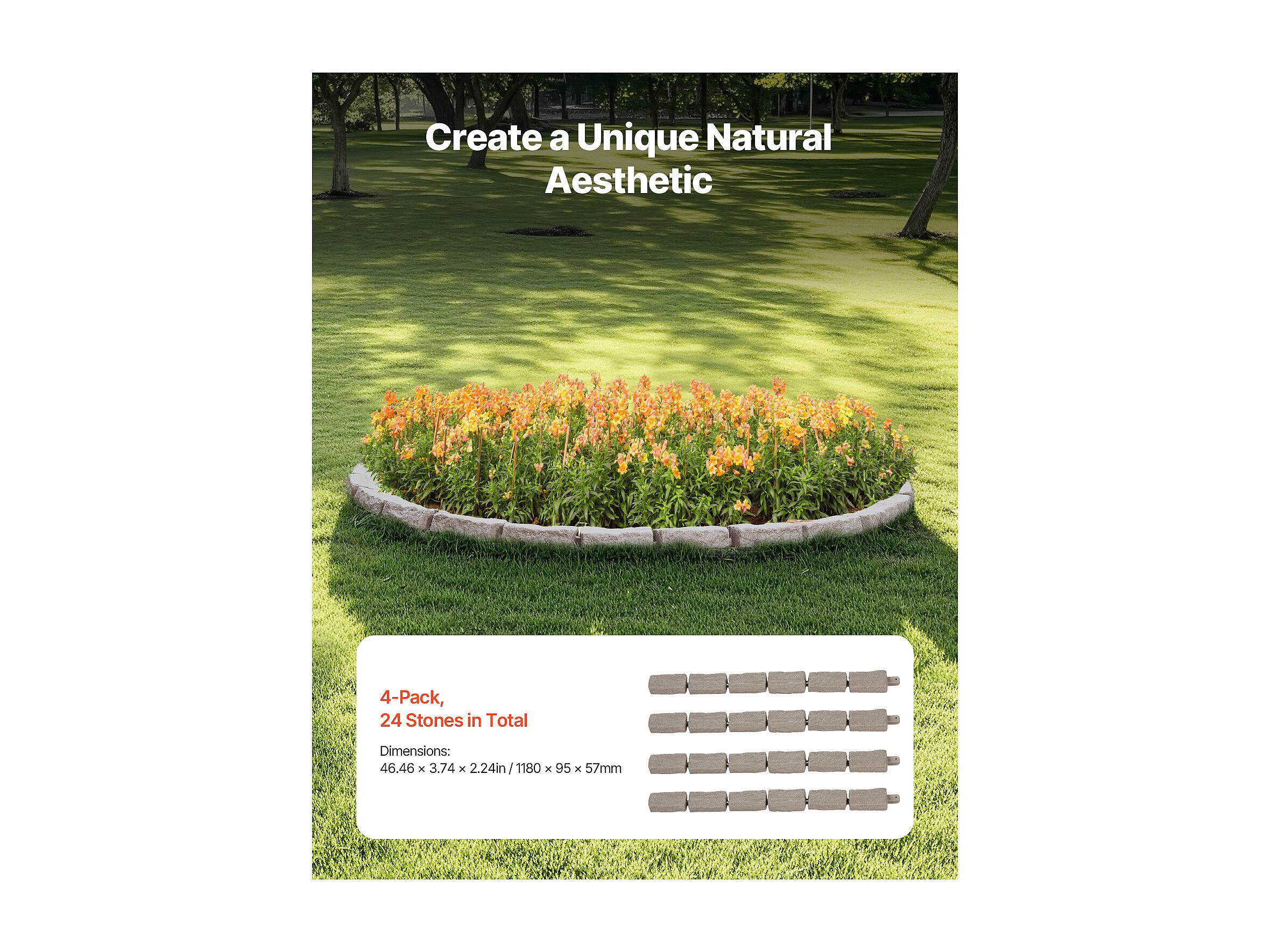 Randen om te Planten SucceBuy Kunstmatige Stenen Tuinrand, 1180 × 95 × 57 mm, Realistische Gazonrand, Modulair Ontwerp, Baksteenformaat, Nettogewicht 6 kg