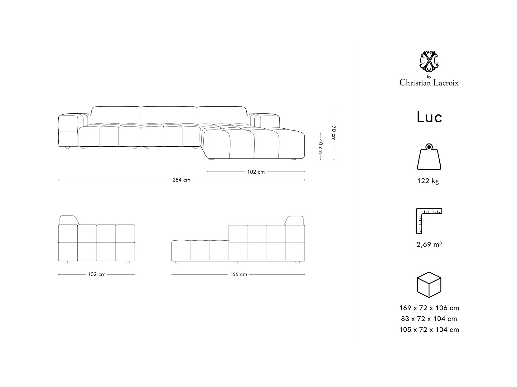 CXL by Christian Lacroix - Linker hoekbank "Luc" 4 zitplaatsen, Flueel, Olie - 284x166x70cm