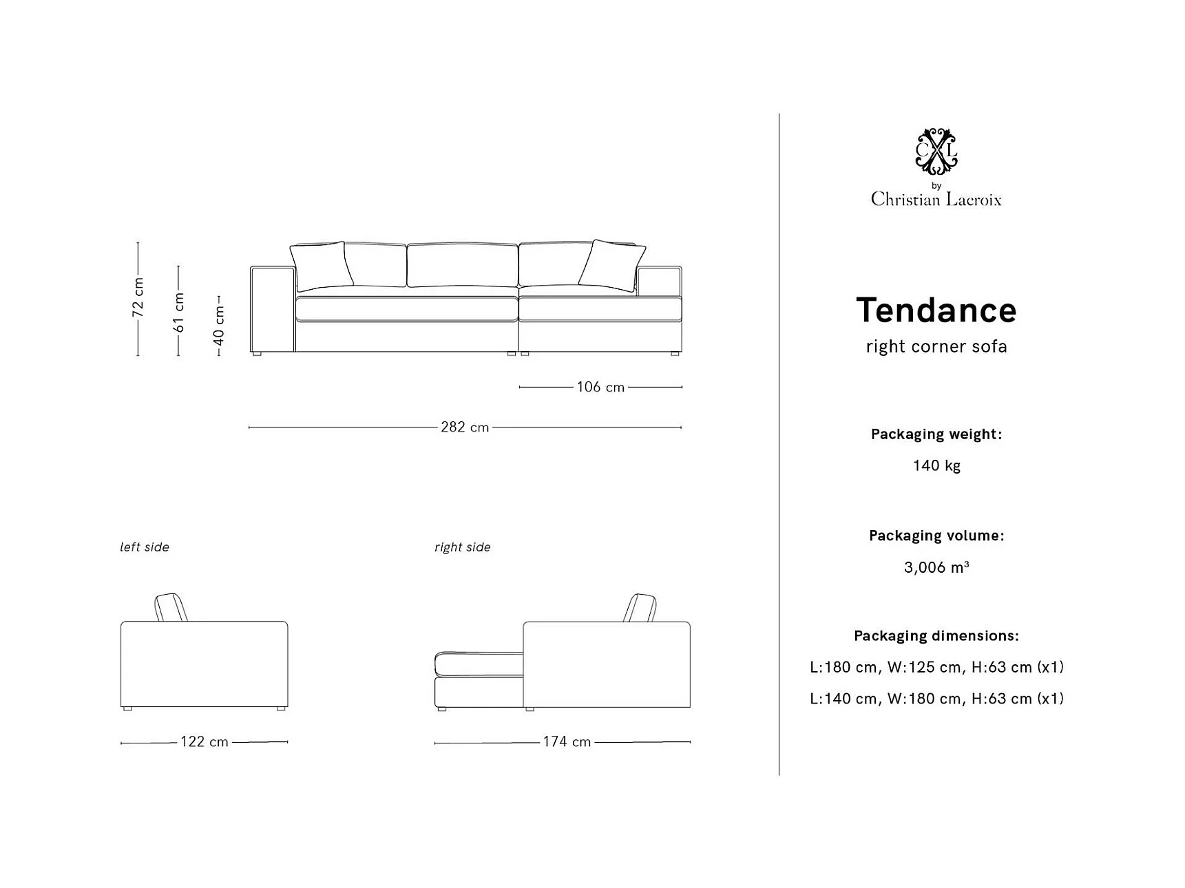 CXL by Christian Lacroix - Rechter hoekbank "Tendance" 5 zitplaatsen, Structurele stof, Rood - 282x174x72cm