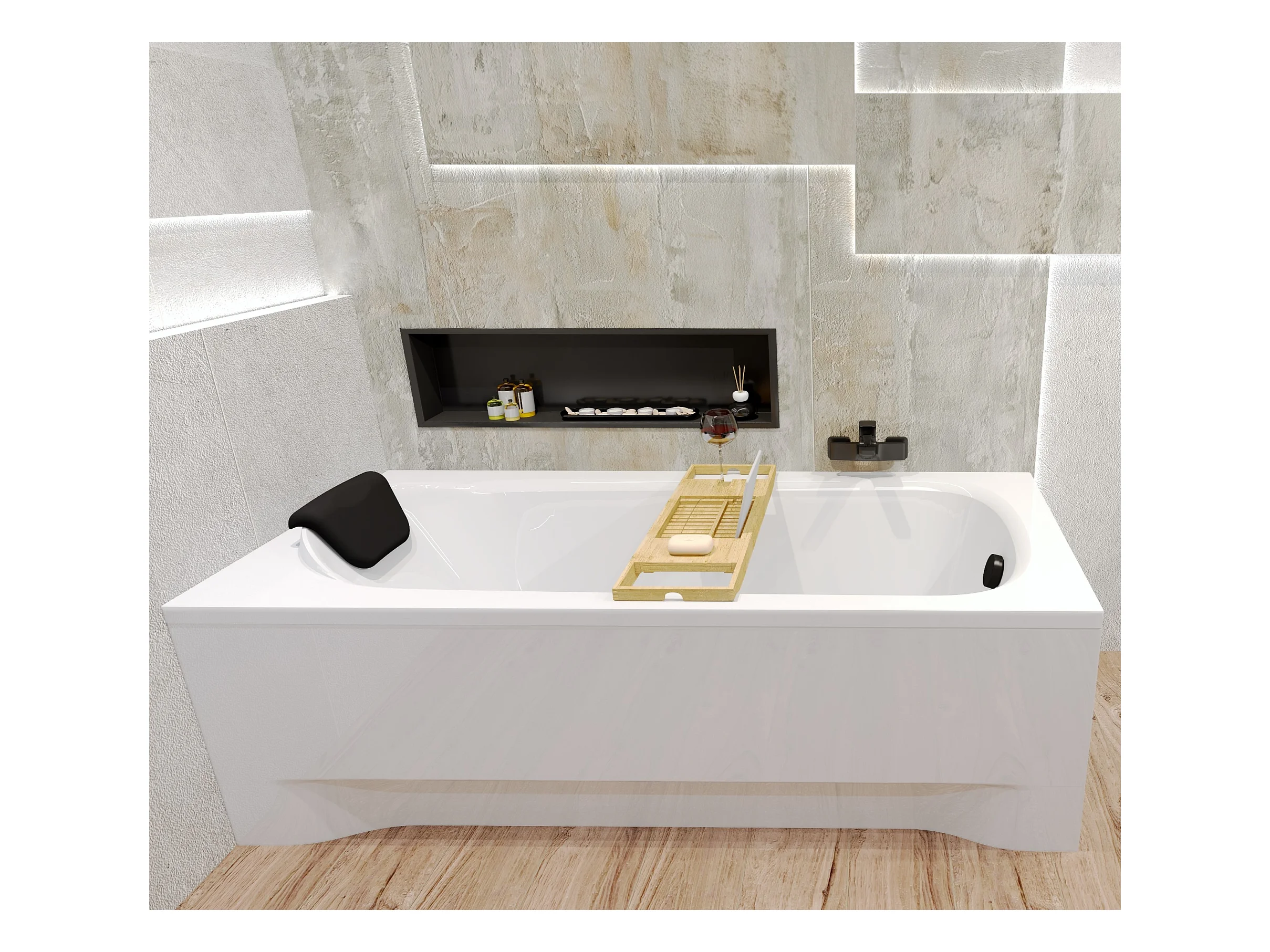 Rechthoekige badkuip BONA 190x80 + bamboe badrek + hoofdsteun KODI | Afvoer & poten GRATIS!