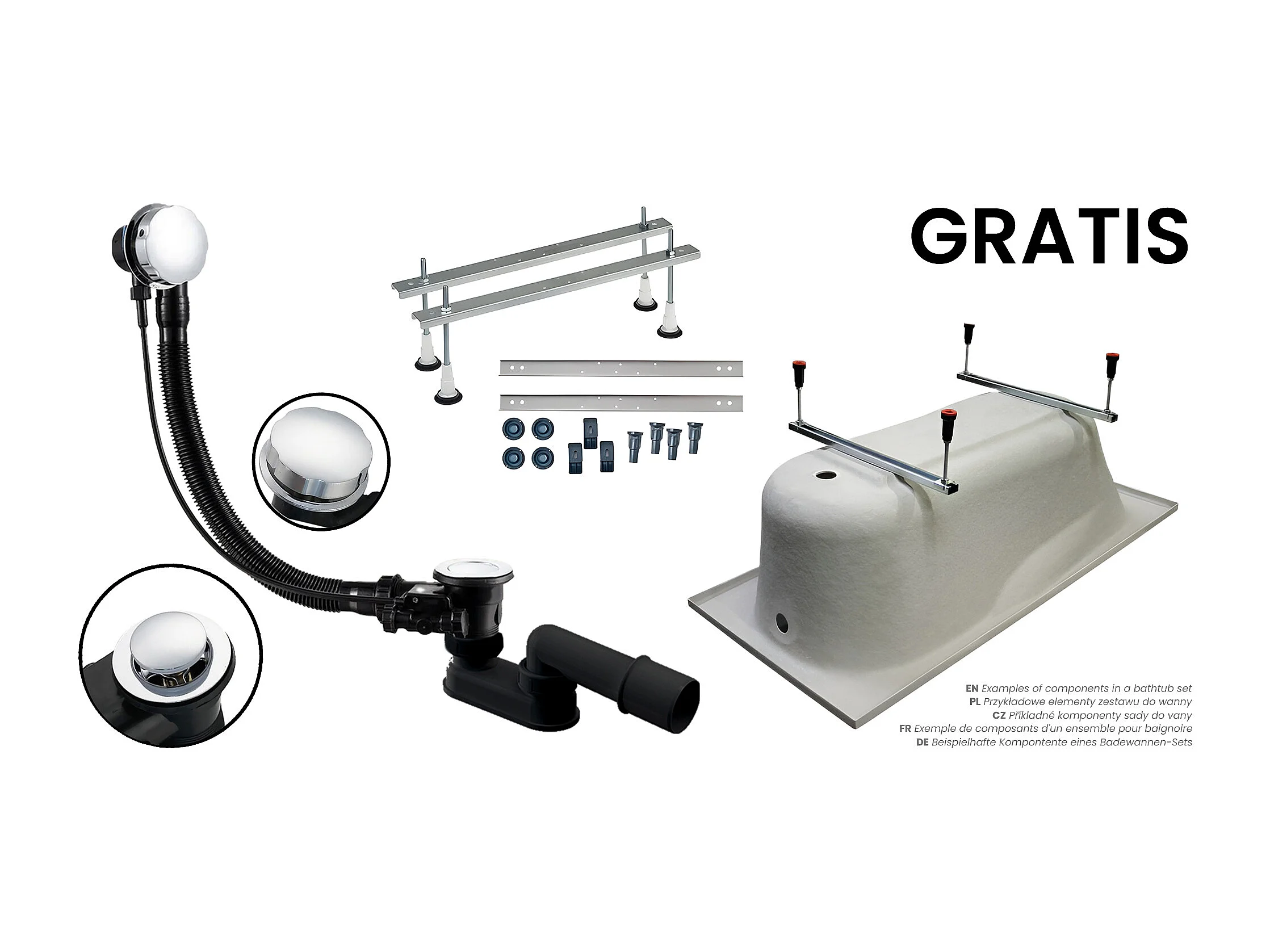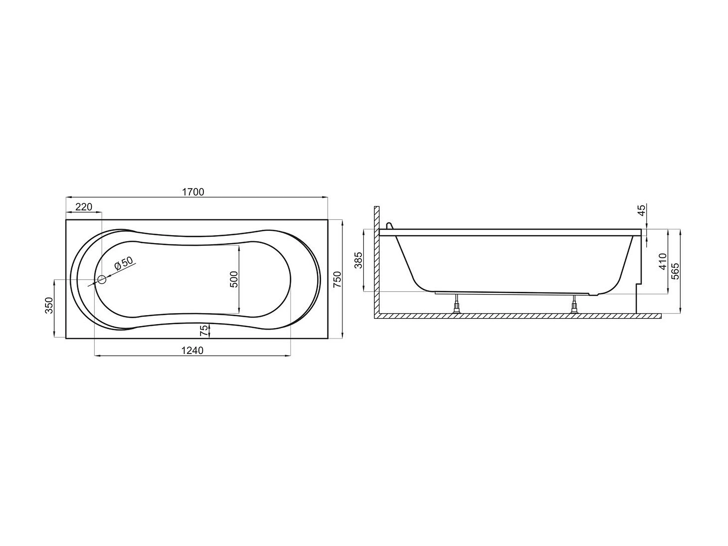 Rechthoekige badkuip GRACJA 170x75 met acrylrand | Afvoer & voeten GRATIS!