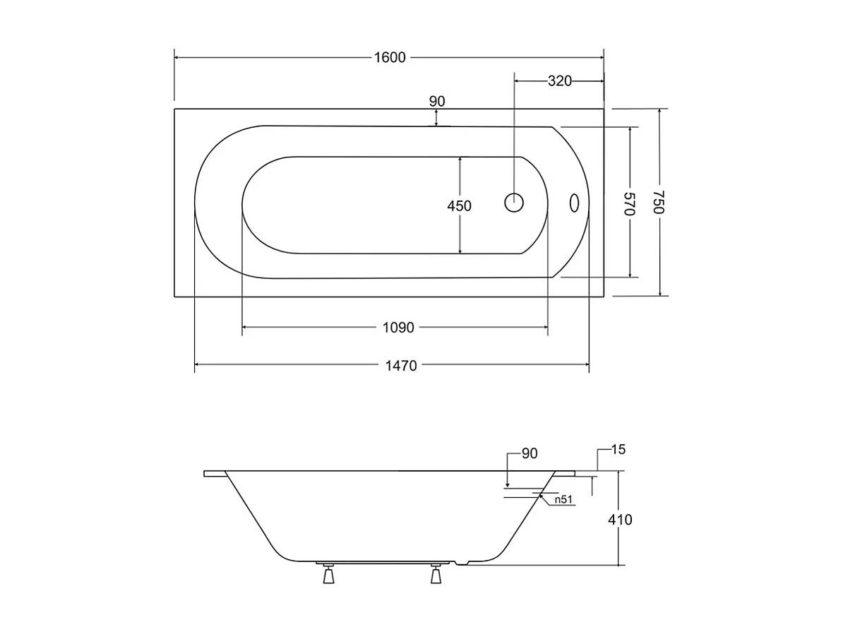 Rechthoekige badkuip VITAE 160x75 met badrand | Afvoer & voeten GRATIS!