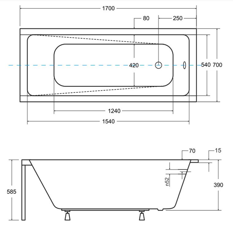 Rechthoekige badkuip MODERN 170x70 | Afvoer & poten GRATIS!