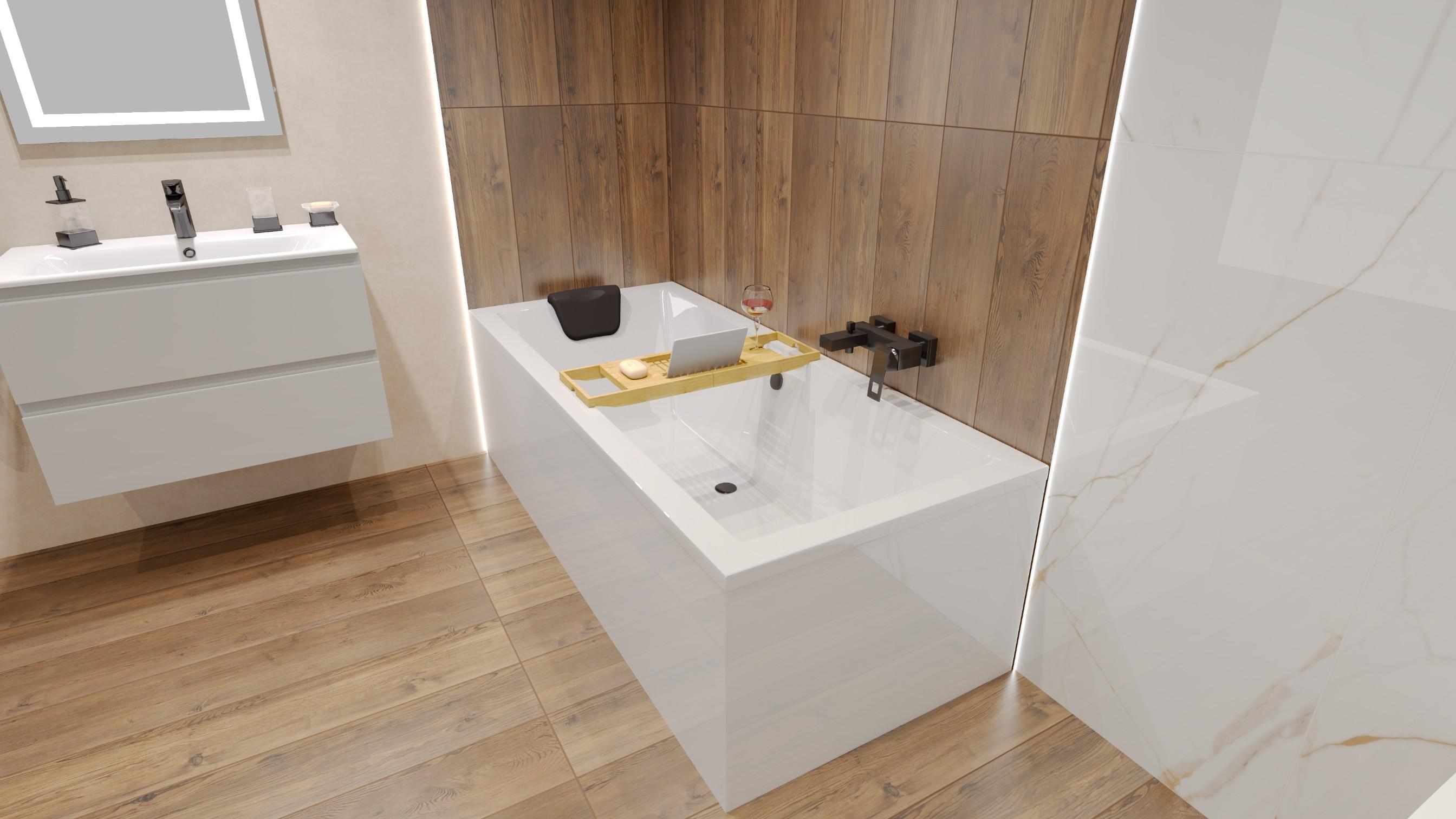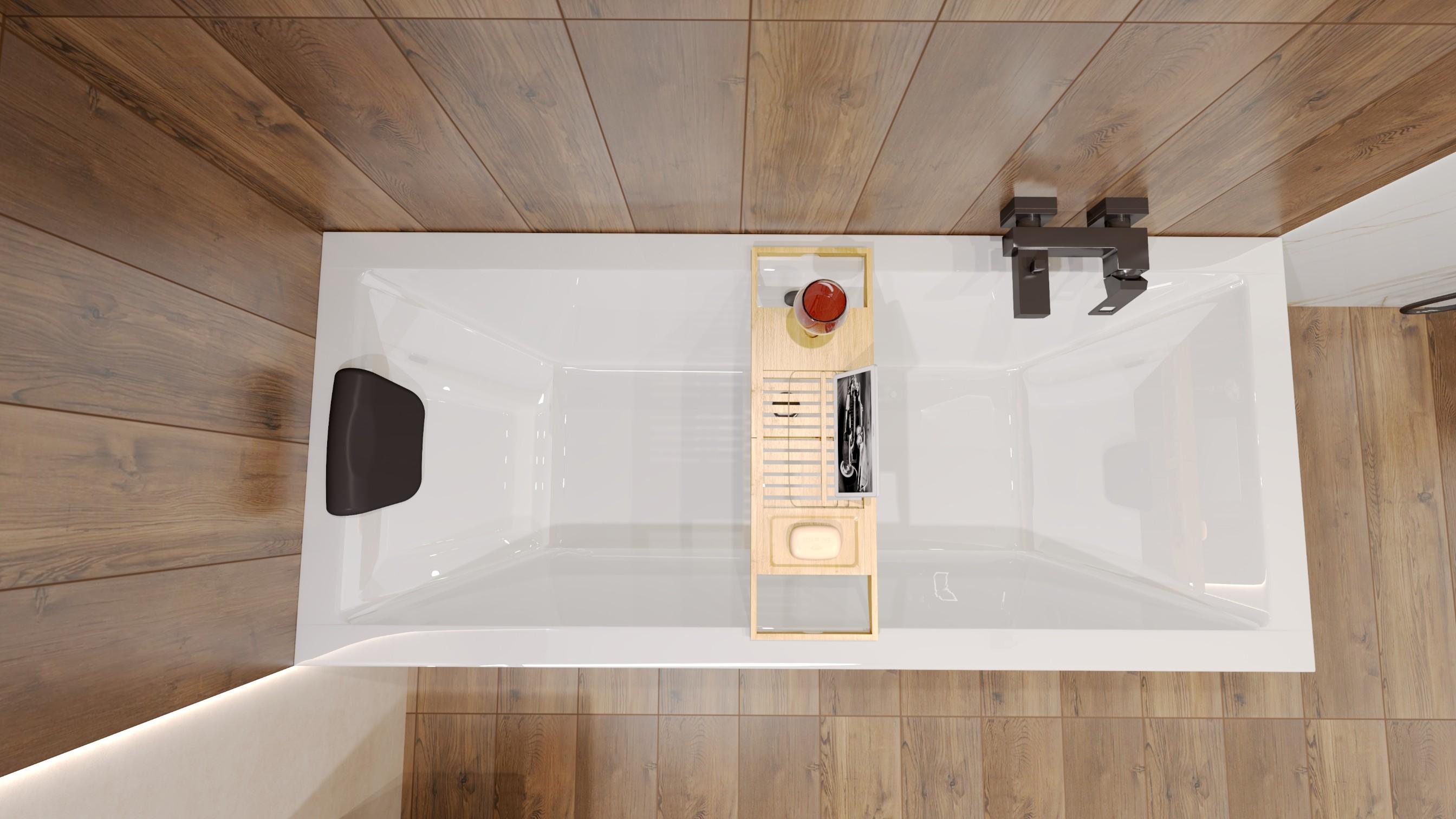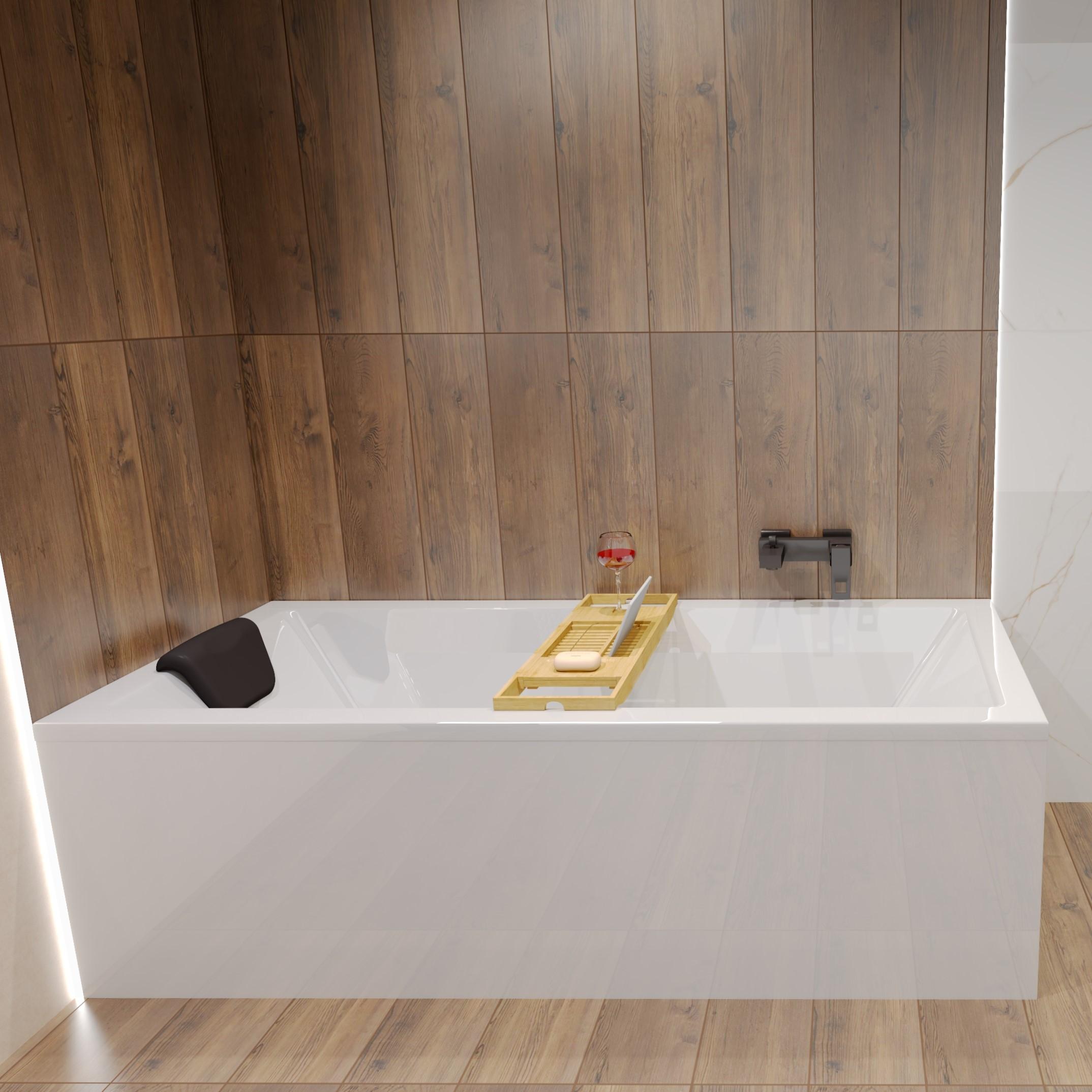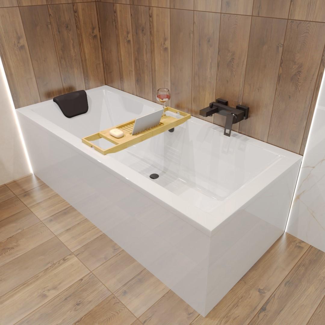 Rechthoekige badkuip MODERN 160x70 + hoofdsteun KODI + bamboe badkuipplank | Afvoer & poten GRATIS !