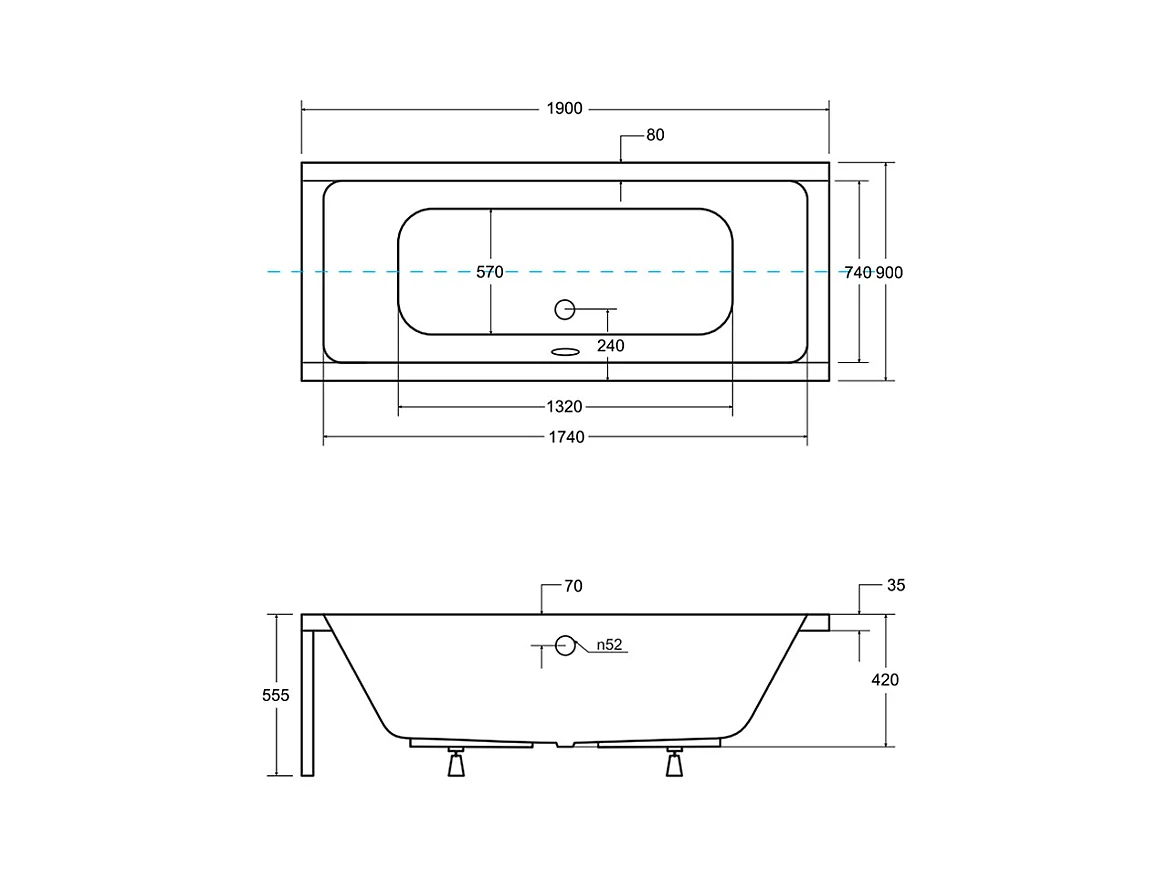 Rechthoekige badkuip QUADRO 190x90 + hoofdsteun KODI | Afvoer & voeten GRATIS!