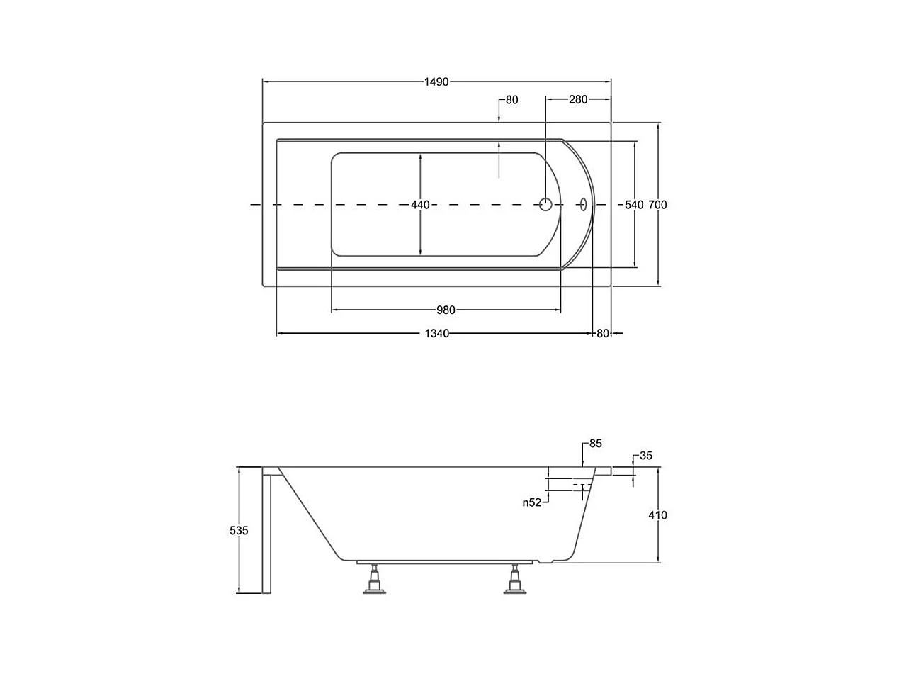 Rechthoekige badkuip MODERN 150x70 + hoofdsteun KODI | Afvoer & poten GRATIS !