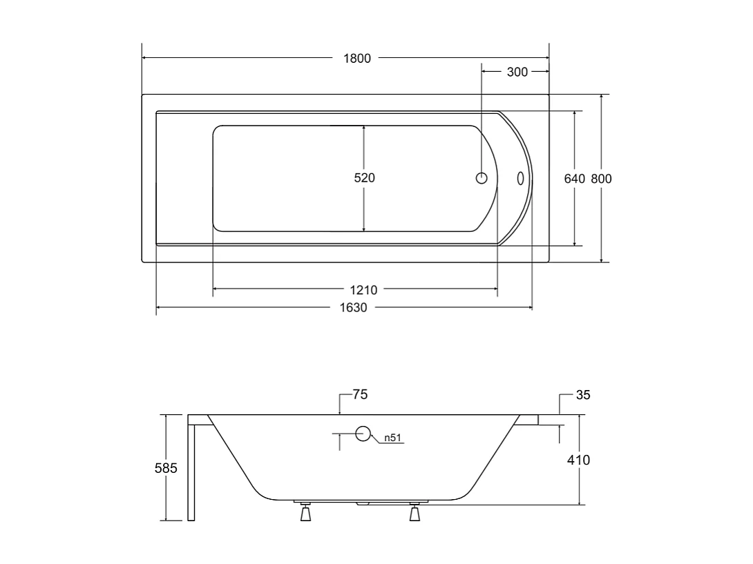 Rechthoekige badkuip VITAE SLIM 180x80 met piepschuimbekleding, legplank 4 cm | Afvoer & poten GRATIS!