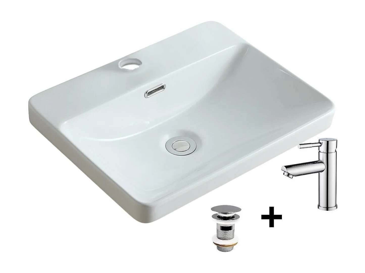 Rechthoekige inbouwspoelbak 48x37 + kraan + LEA-afvoer