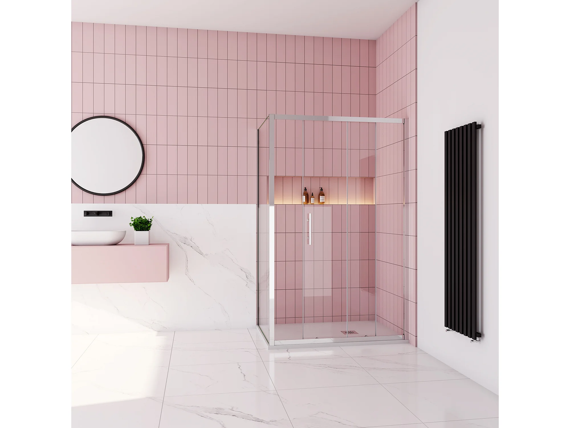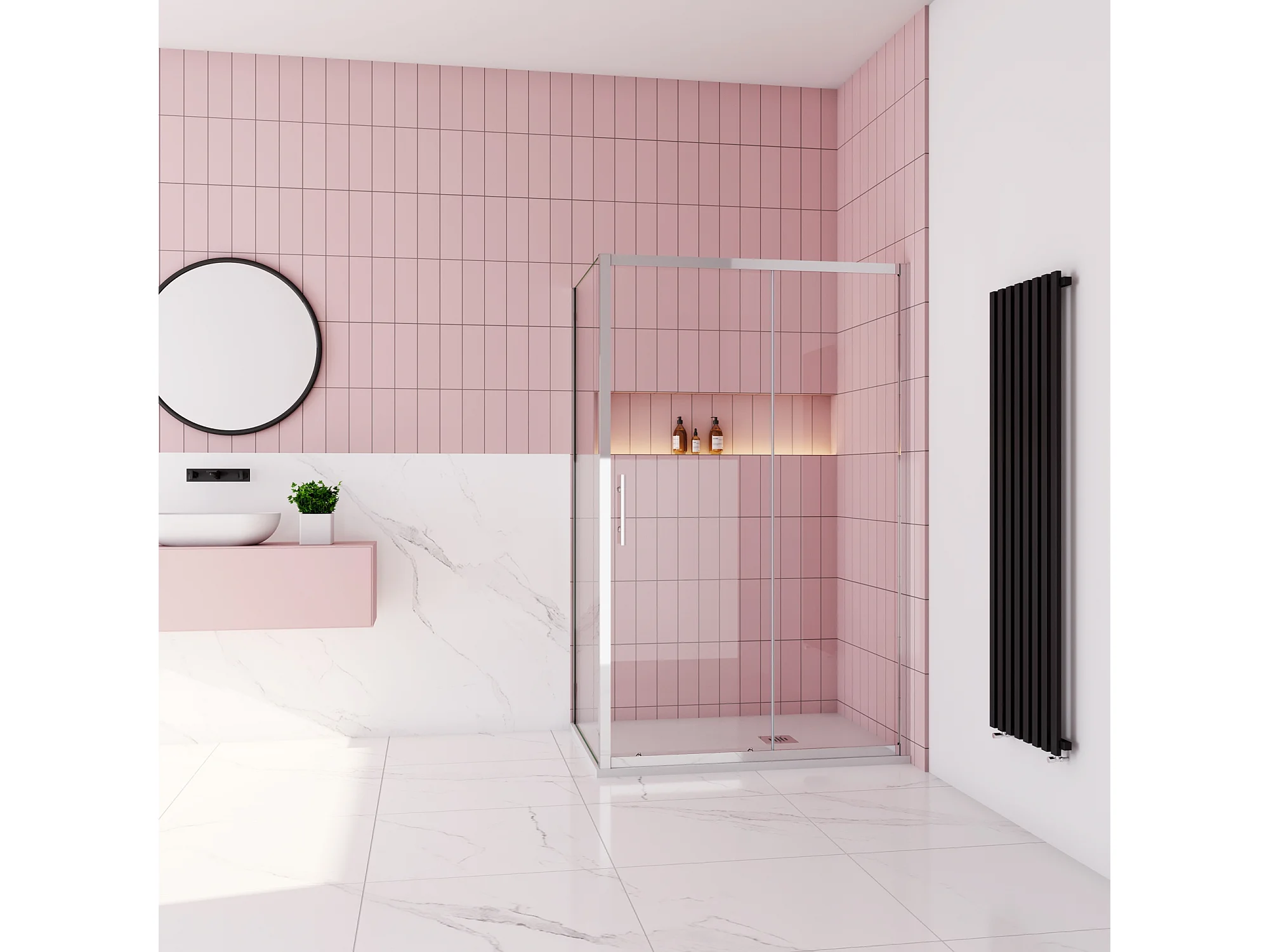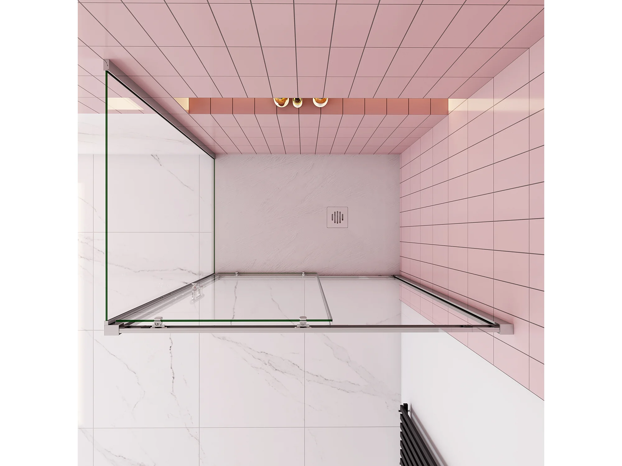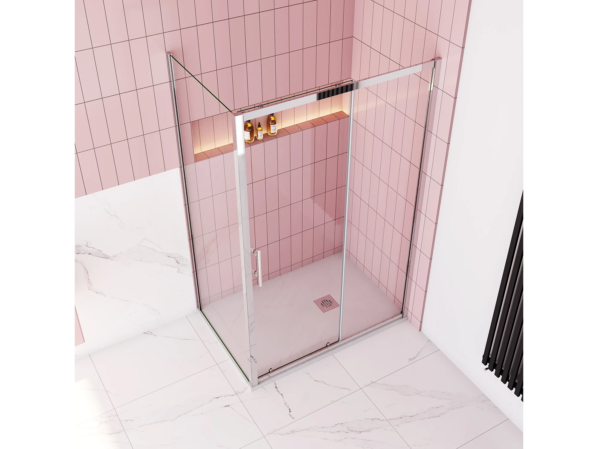 Rechthoekige schuifdeur douchecabine 100x190cm,zijpaneel 76x190cm,5mm helder veiligheidsglas,profiel van glanzend chroom.