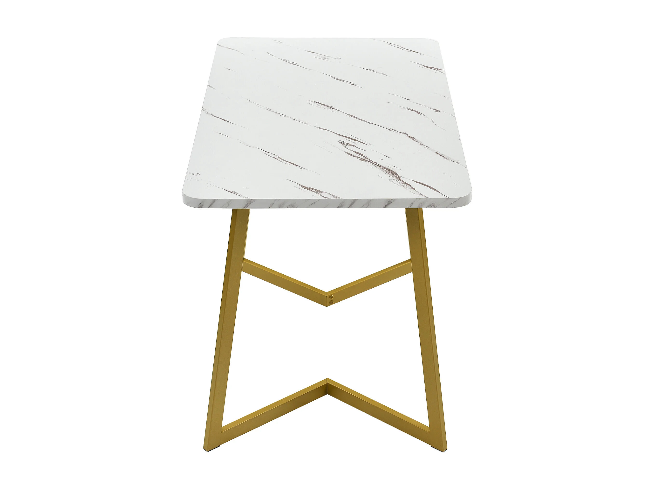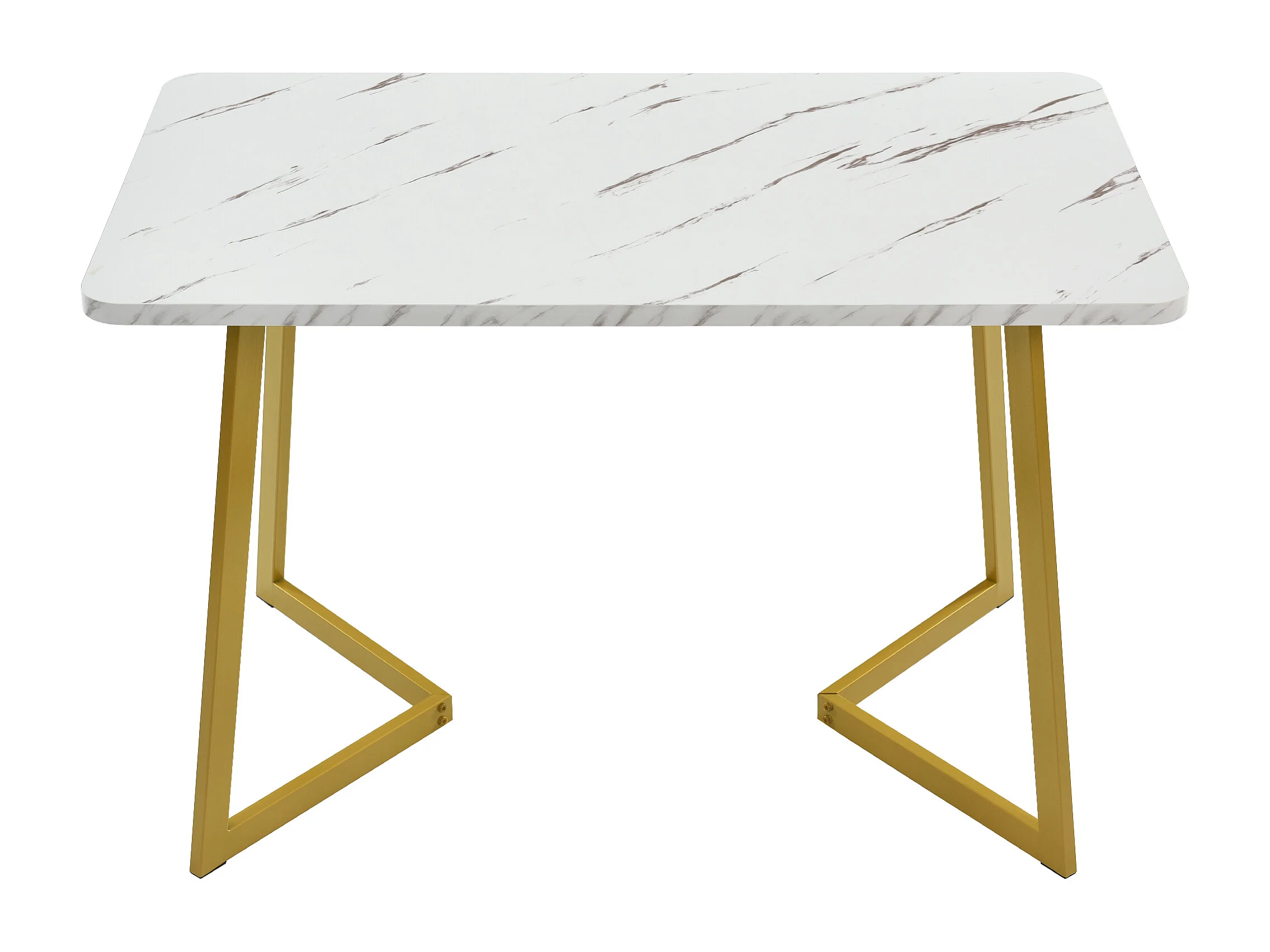 Rechthoekige tafelset 117x68 cm en 4 zwarte fluwelen stoelen - gouden metalen tafelpoten - wit MDF-blad