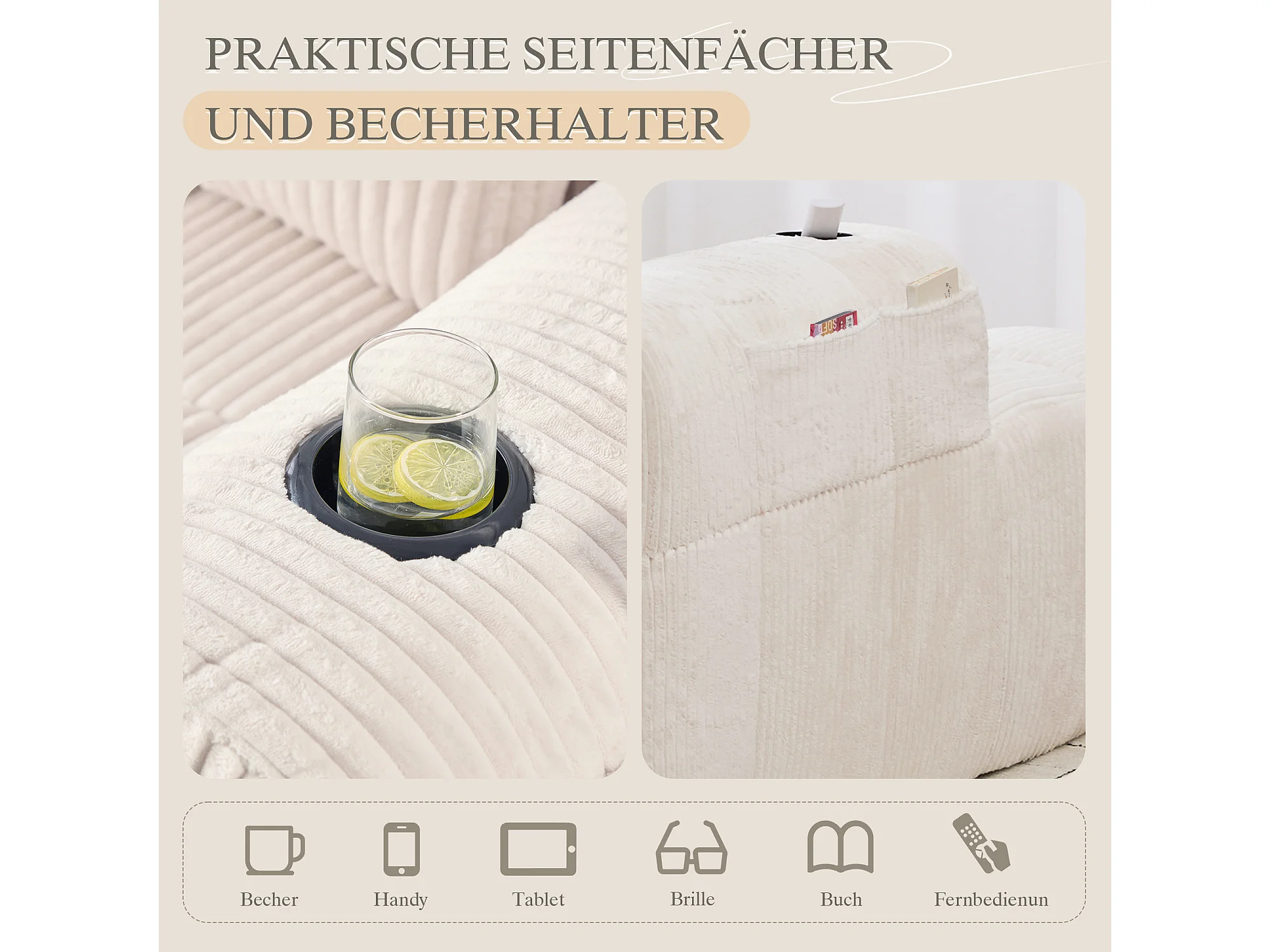 Relaxbank van corduroy met zijvak - Geen montage nodig - Beige