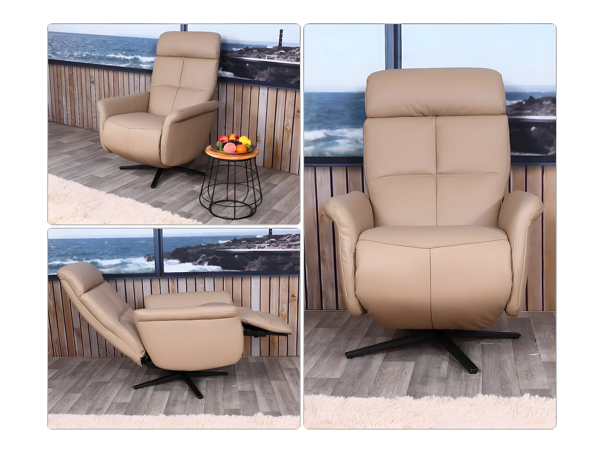 Relaxfauteuil MCW-L11 draaibaar, volledig leer, taupe