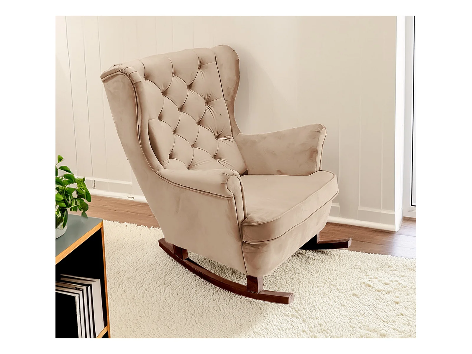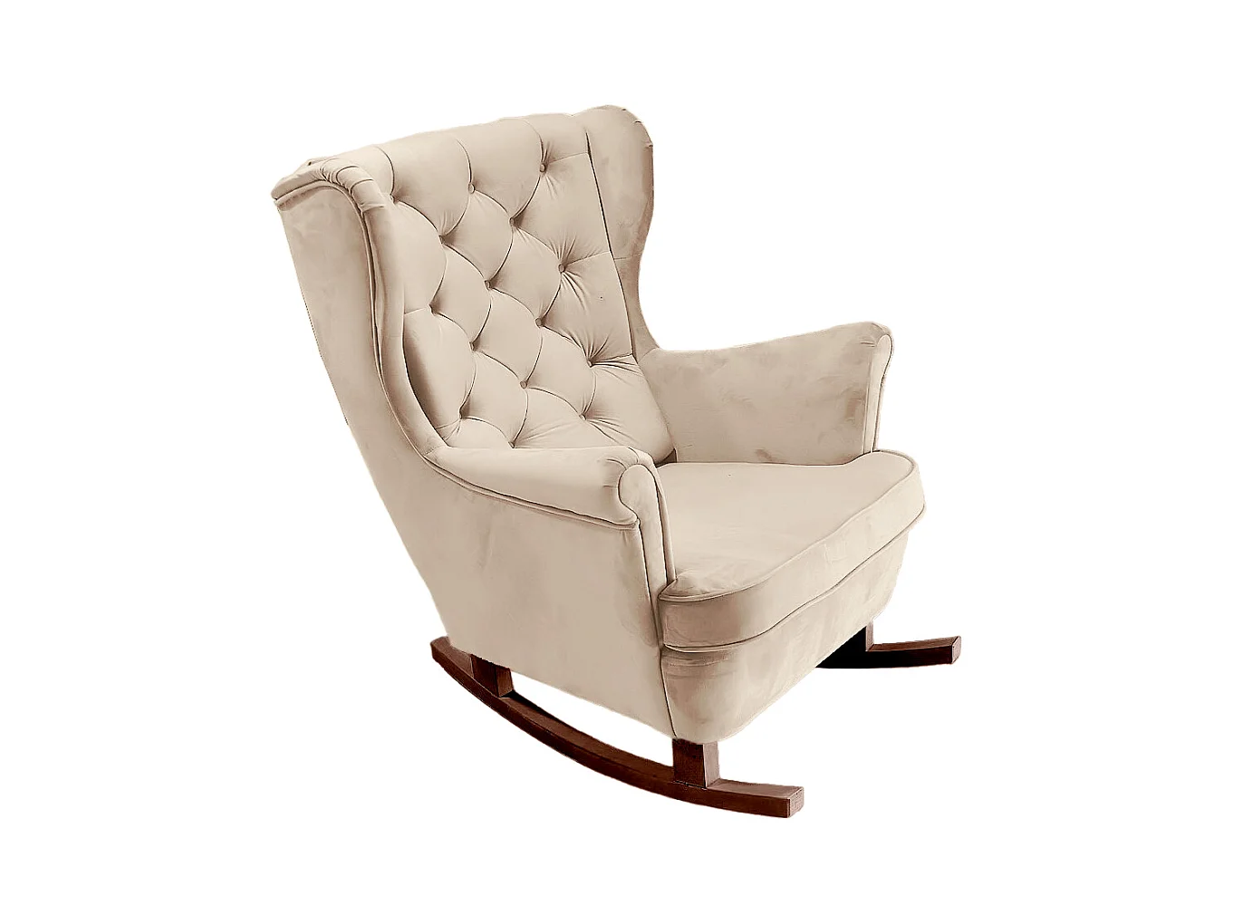 Schommelstoel MCW-K10, kunstleer crème, frame walnootlook