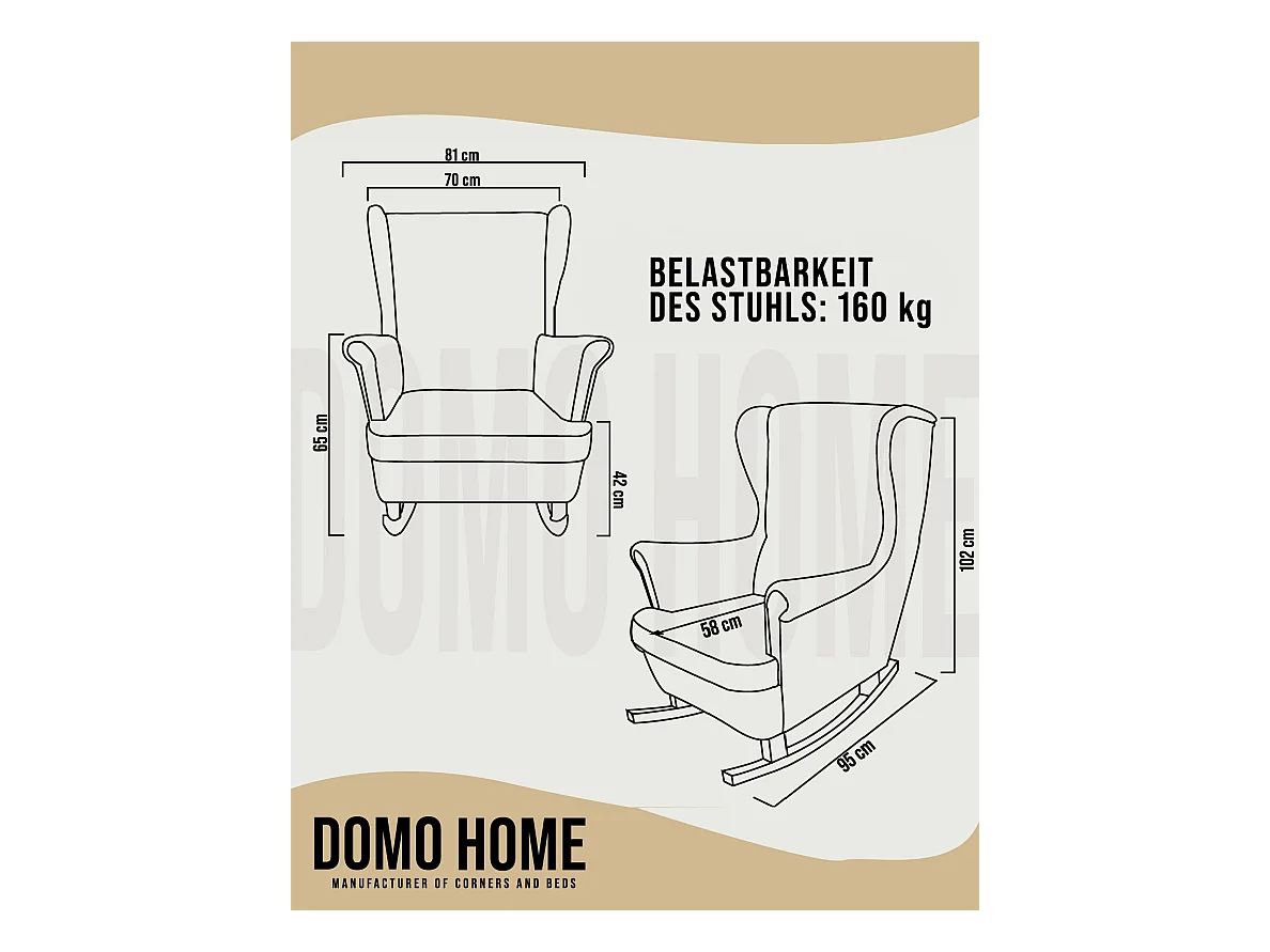 Schommelstoel Vaasa T820, textiel, crème/grijs