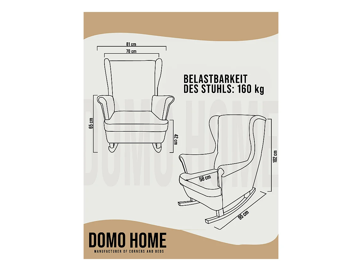 Schommelstoel MCW-K10, kunstleer crème, frame walnootlook